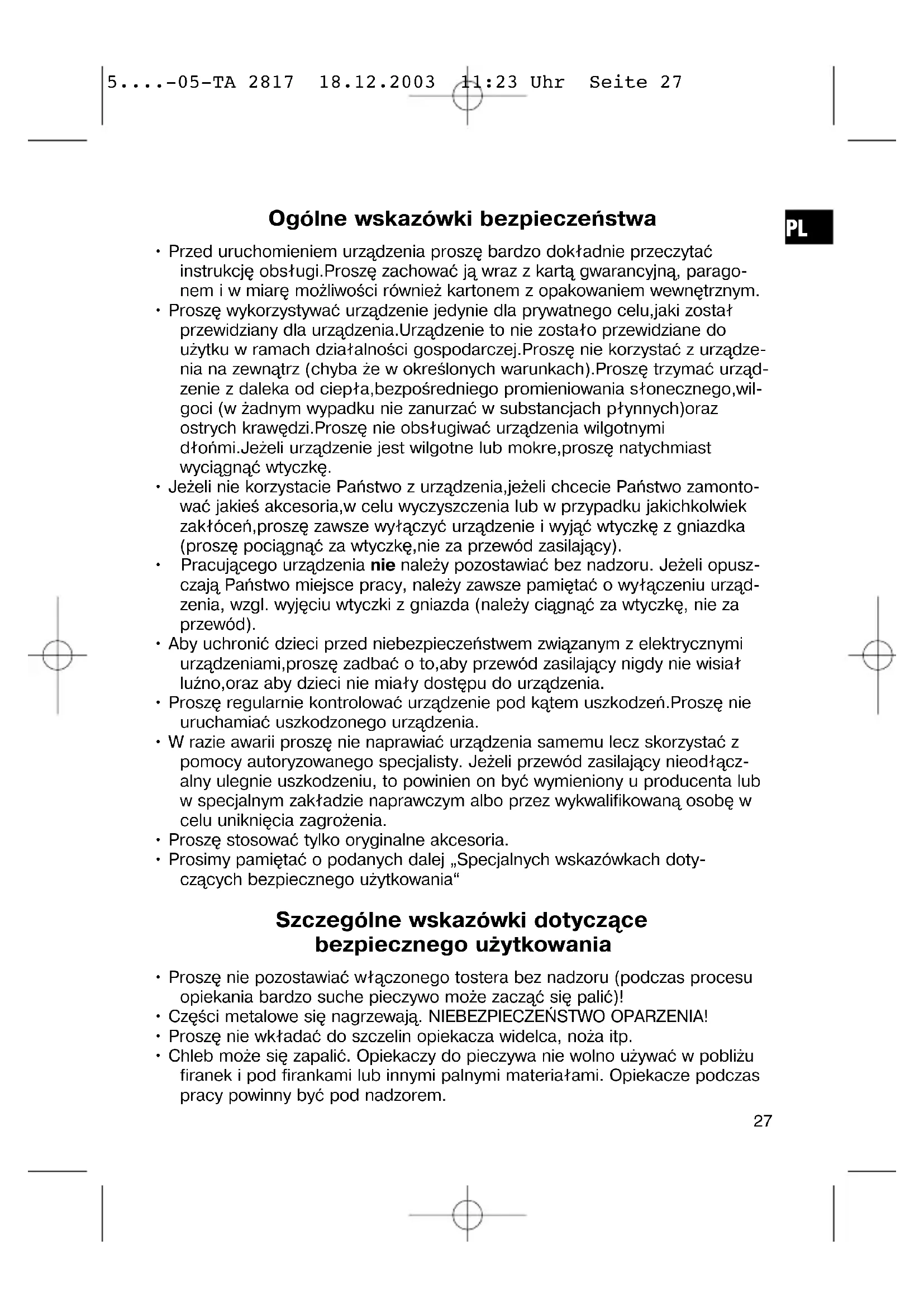 TA 2817 - Toster CLATRONIC - Bezpłatna instrukcja obsługi
