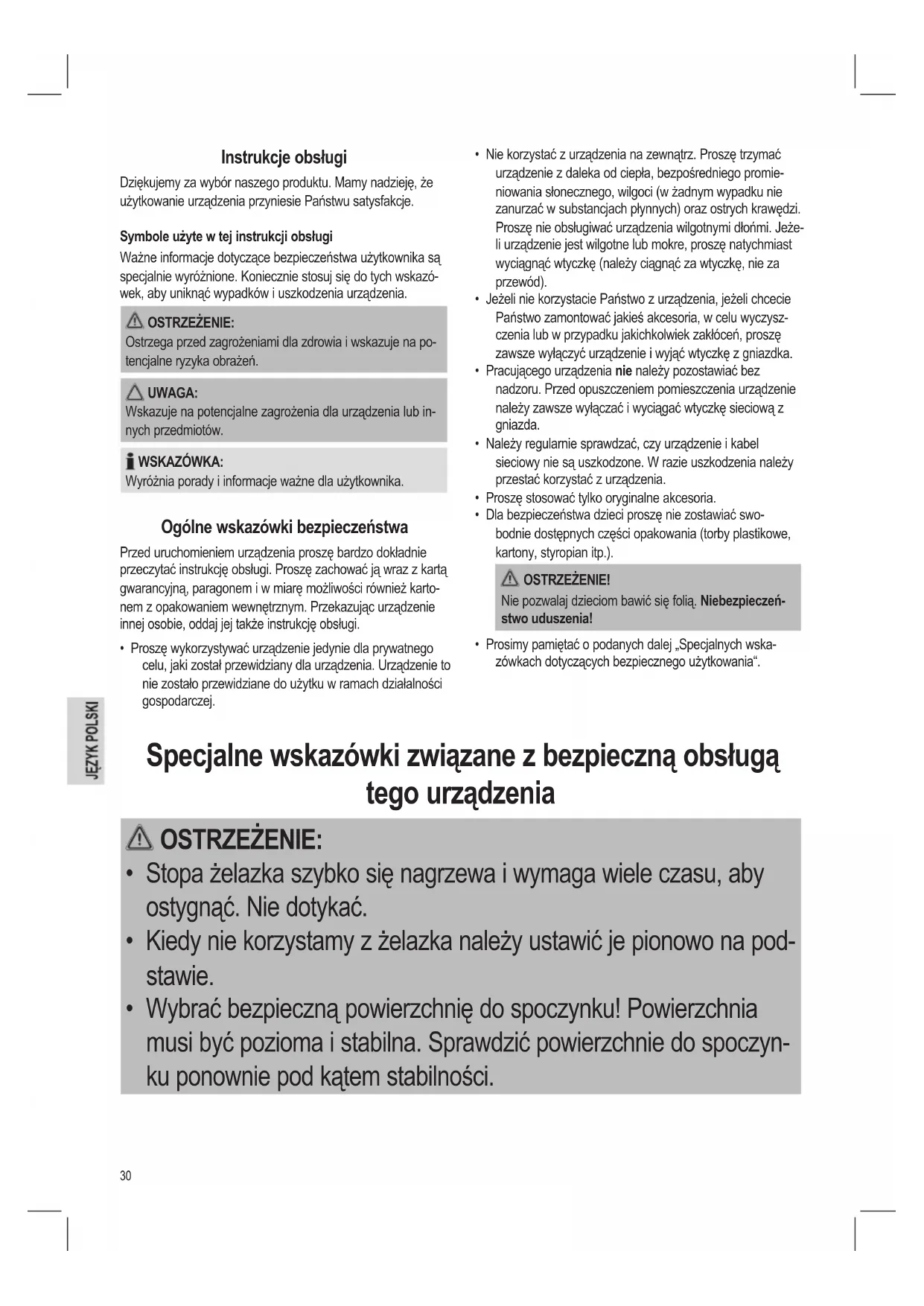 - Żelazko musi być używane oraz odstawione na stabilnej po- wierzchni. Powierzchnia powinna być równa.