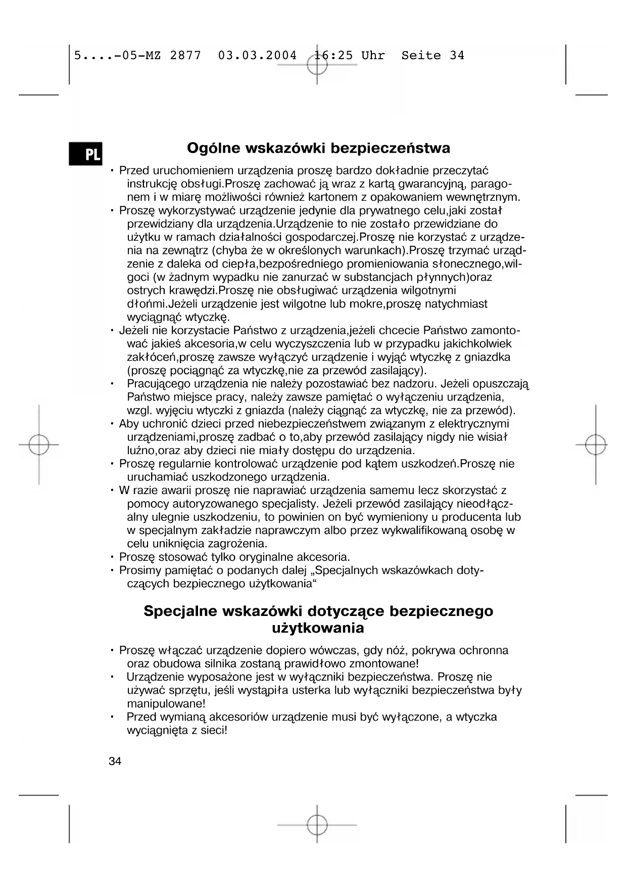 5....-05-MZ 2877 03.03.2004 16:25 Uhr Seite 33Ogólne wskazówki bezpieczeństwa