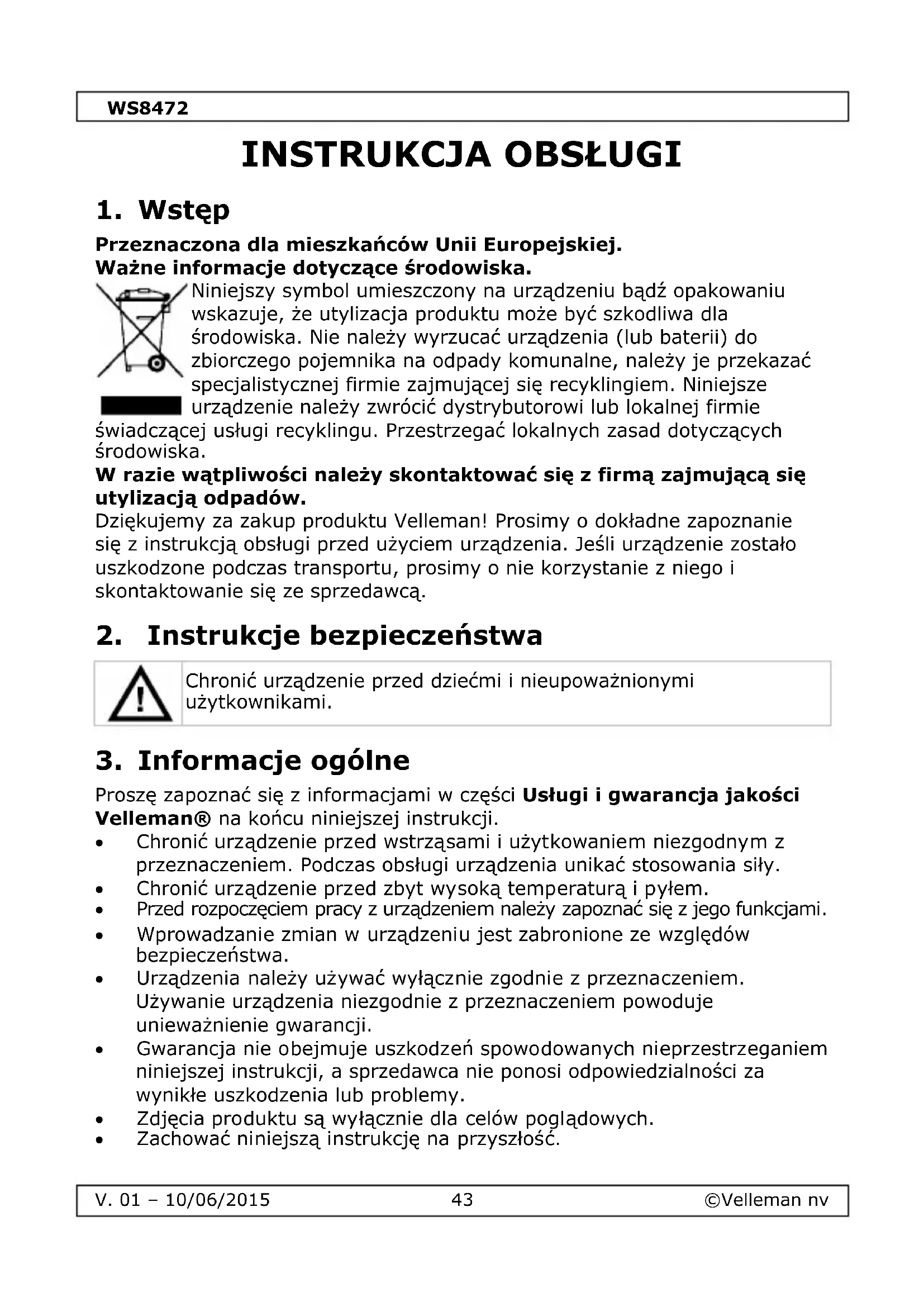 INSTRUKCJA OBSŁUGI WS8472 VELLEMAN