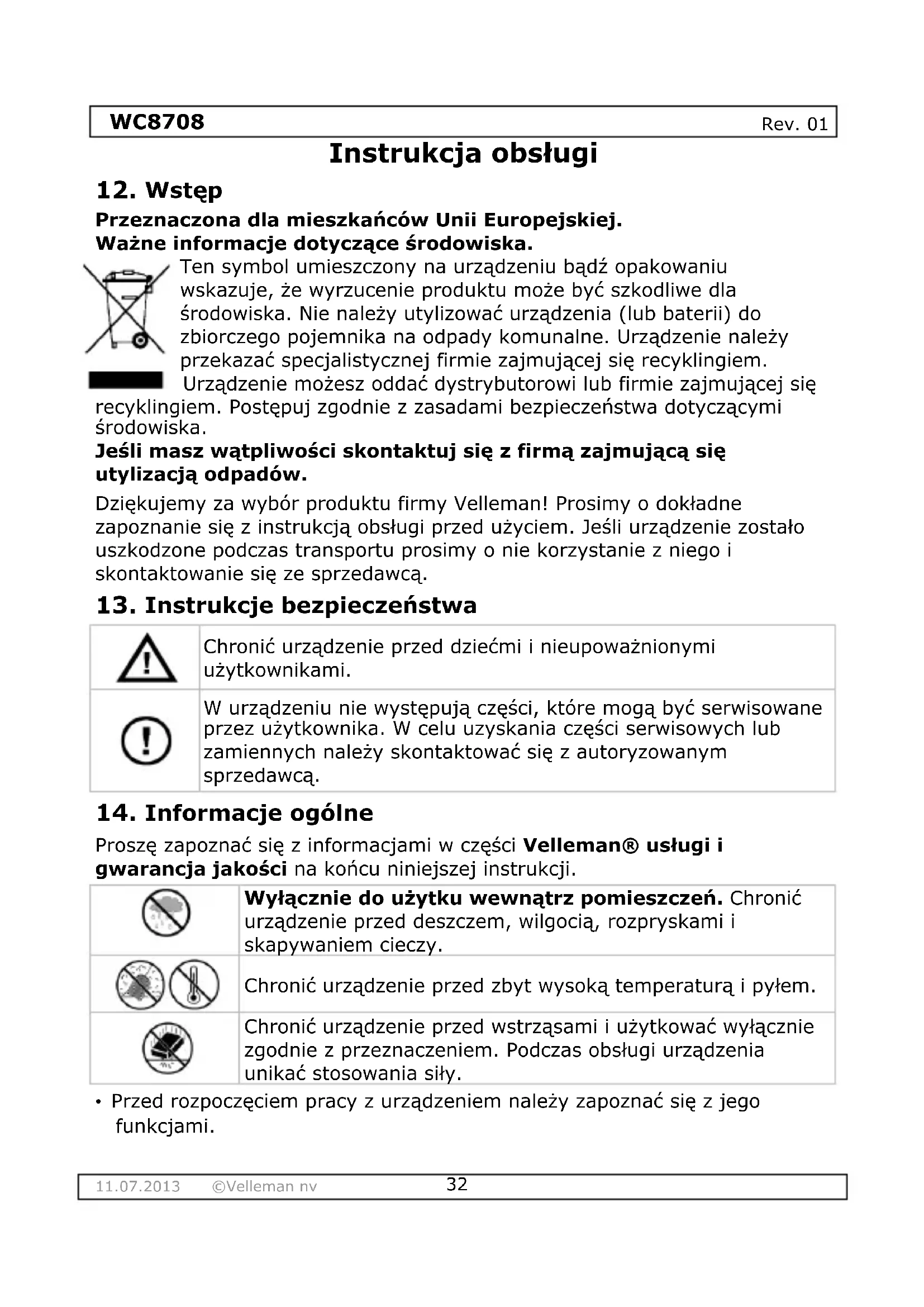 INSTRUKCJA OBSŁUGI WC8708 VELLEMAN