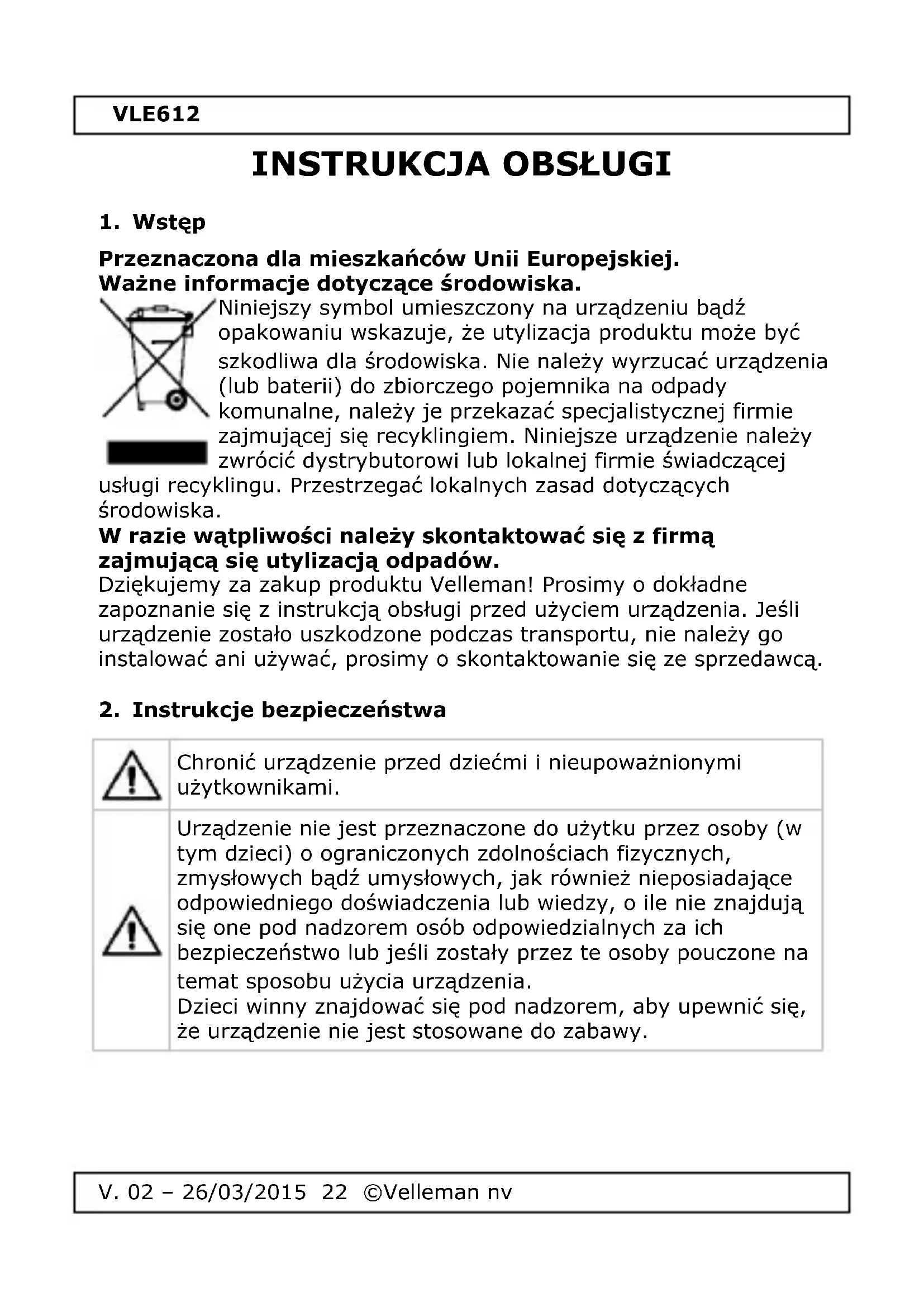 INSTRUKCJA OBSŁUGI VLE612 VELLEMAN