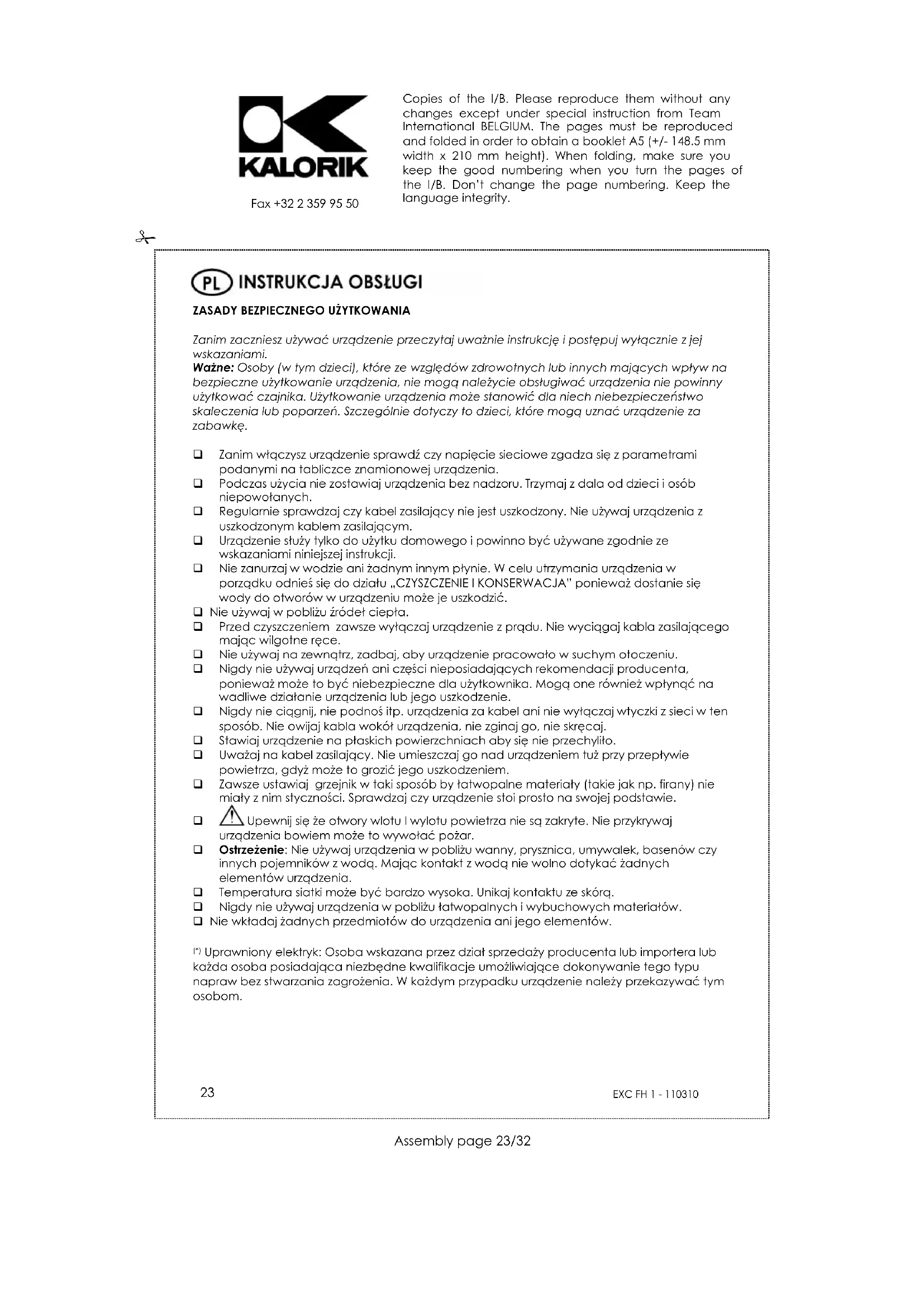INSTRUKCJA OBSŁUGI EXC FH 1 KALORIK