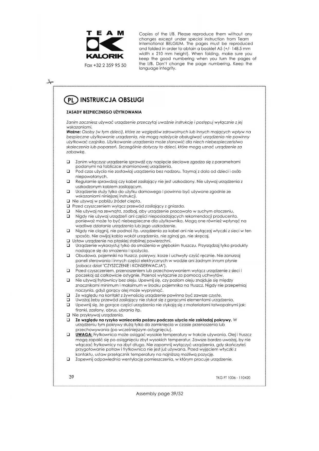 TKG FT 1006 - Frytkownica TEAM - Bezpłatna instrukcja obsługi