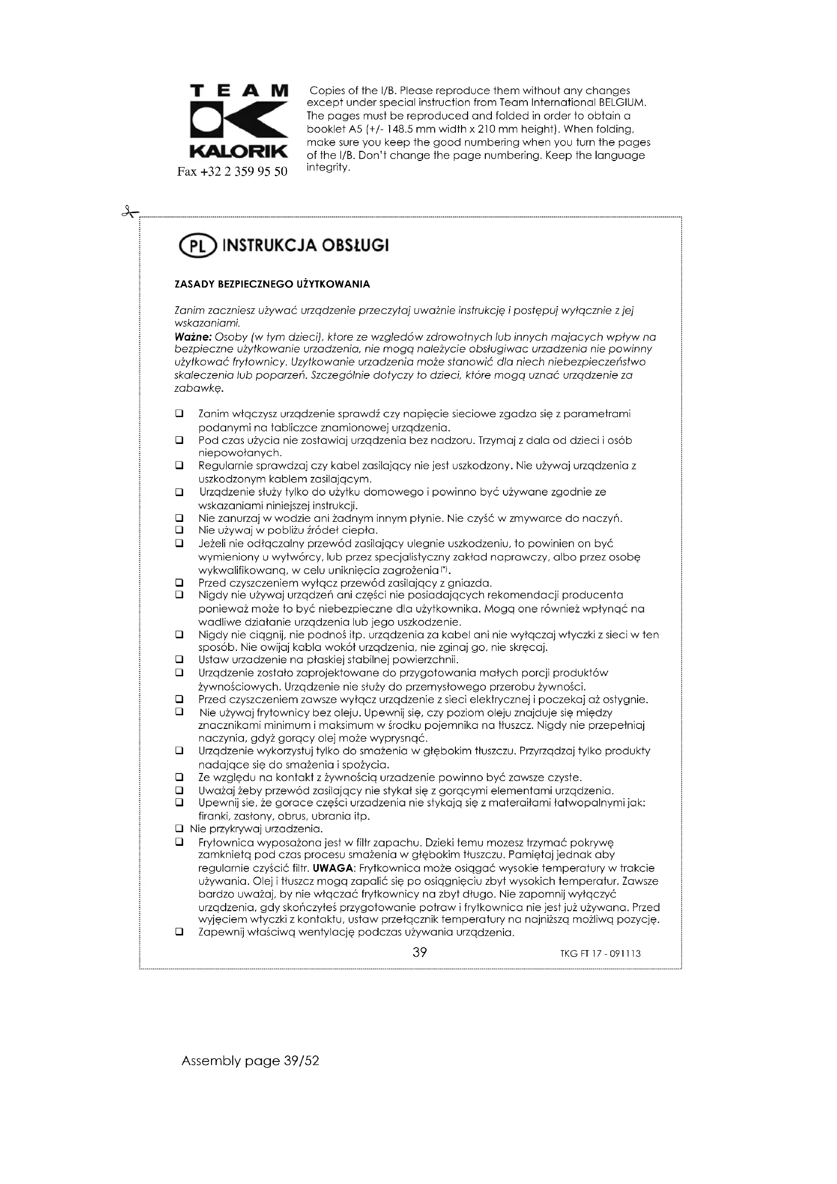 TKG FT 17 - Frytkownica TEAM - Bezpłatna instrukcja obsługi