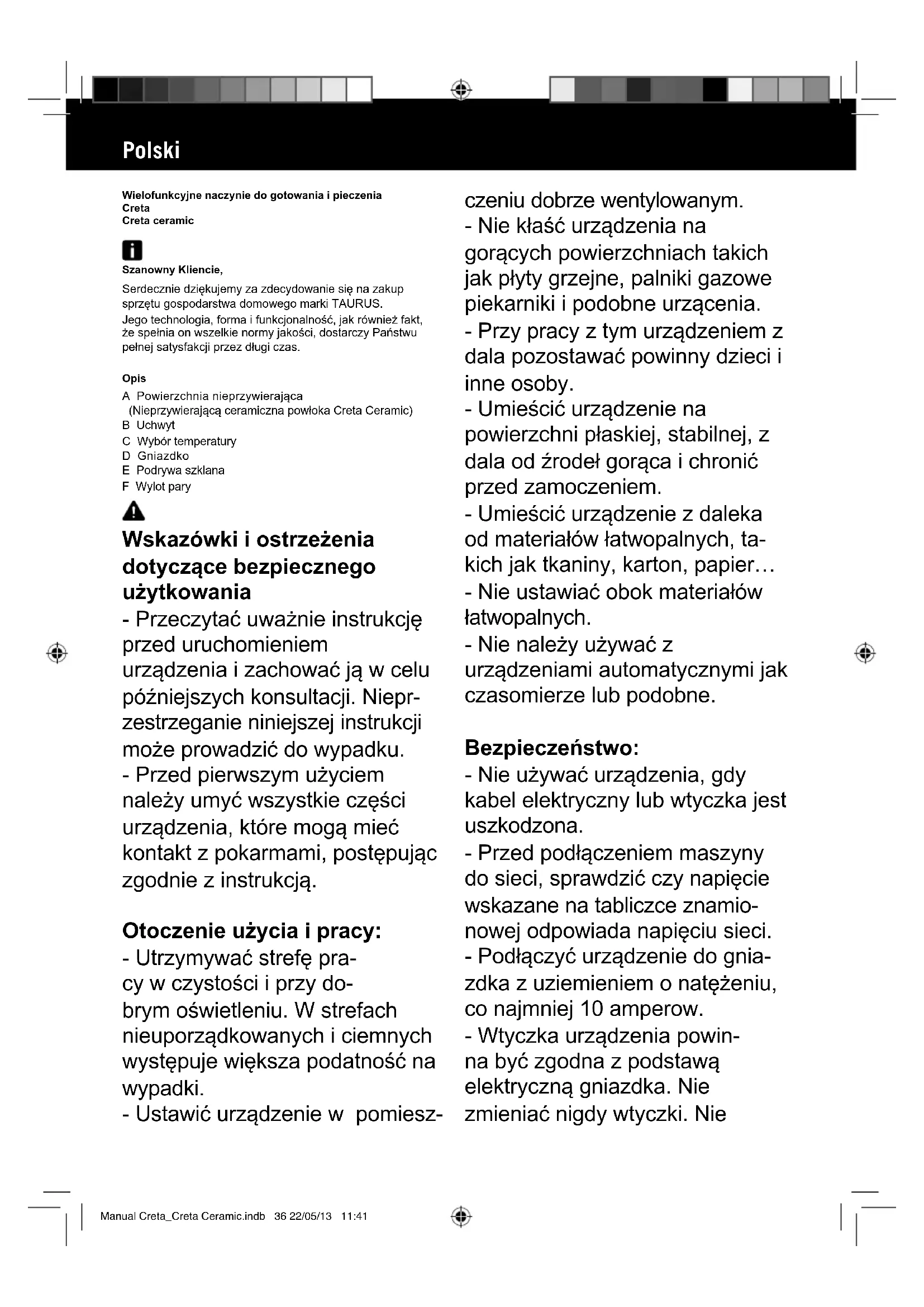 INSTRUKCJA OBSŁUGI Creta Ceramic TAURUS