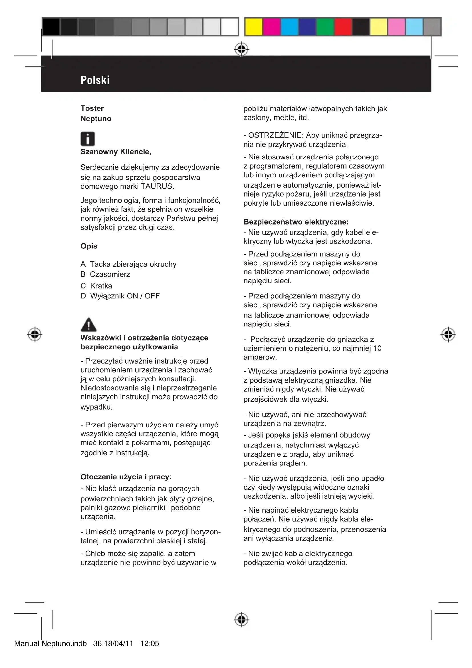 Znajdź bezpłatnie instrukcję urządzenia Neptuno TAURUS w formacie PDF.