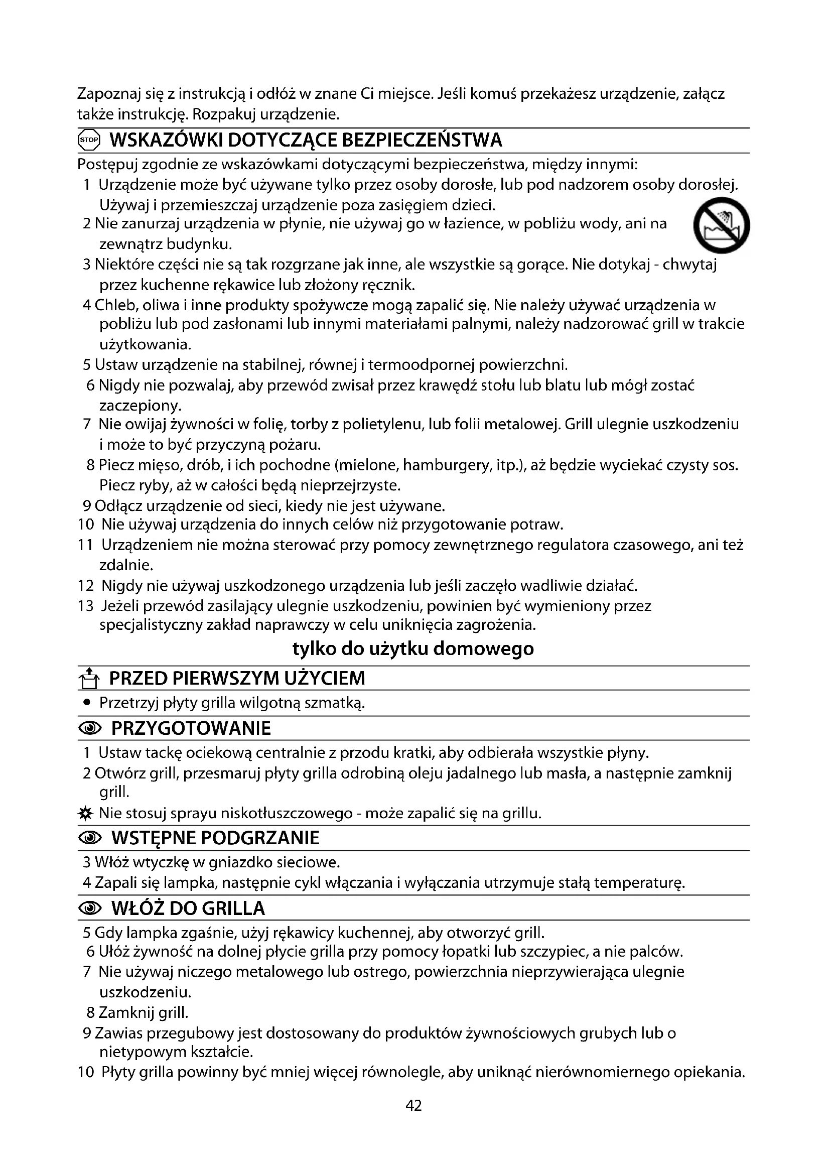 4 Chleb, oliwa i inne produkty spożywcze mogą zapalić się. Nie należy używać urządzenia w pobliżu lub pod zasłonami lub innymi materiałami palnymi, należy nadzorować grill w trakcie użytkowania.