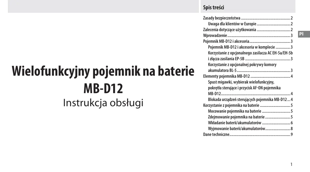 MB-12 - Akcesoria do aparatu NIKON - Bezpłatna instrukcja obsługi