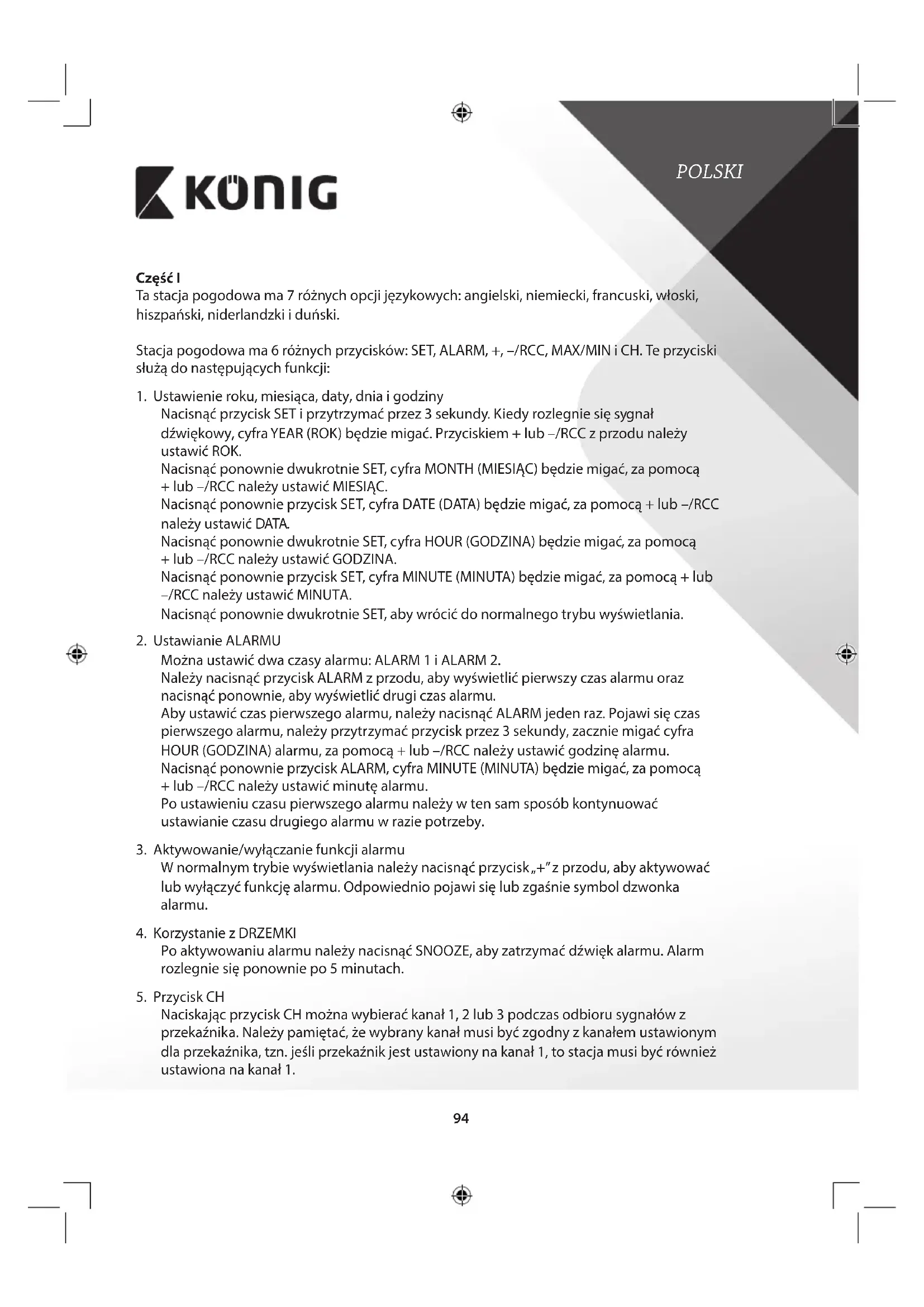KNWS540N - Stacja Pogodowa KONIG - Bezpłatna instrukcja obsługi