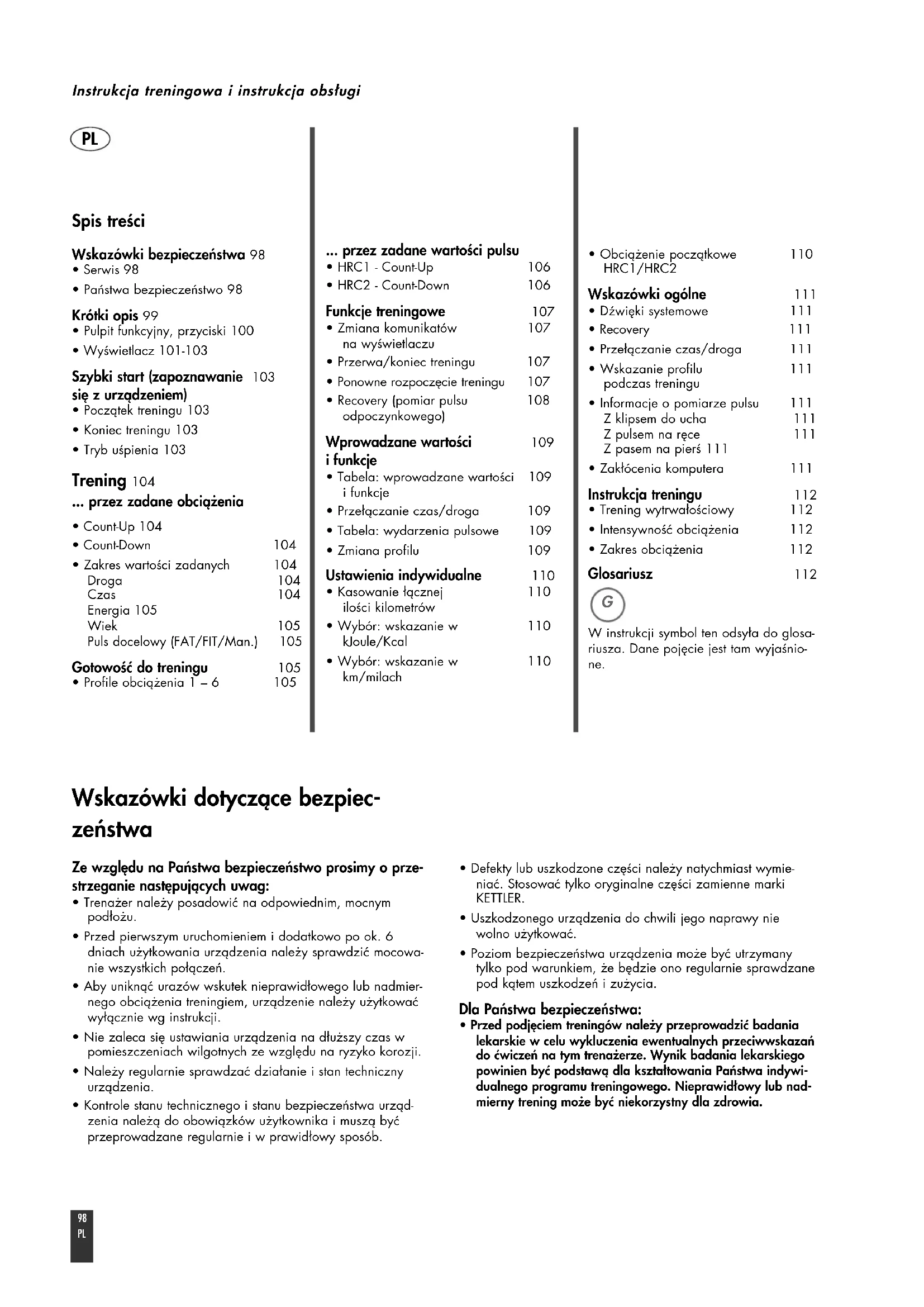 - Trening wytrwałościowy 112 • Intensywność obciążenia 112 • Zakres obciążenia 112 Glosariusz 112 W instrukcji symbol ten odsyła do glosa-riusza. Dane pojęcie jest tam wyjaśnio- ne.