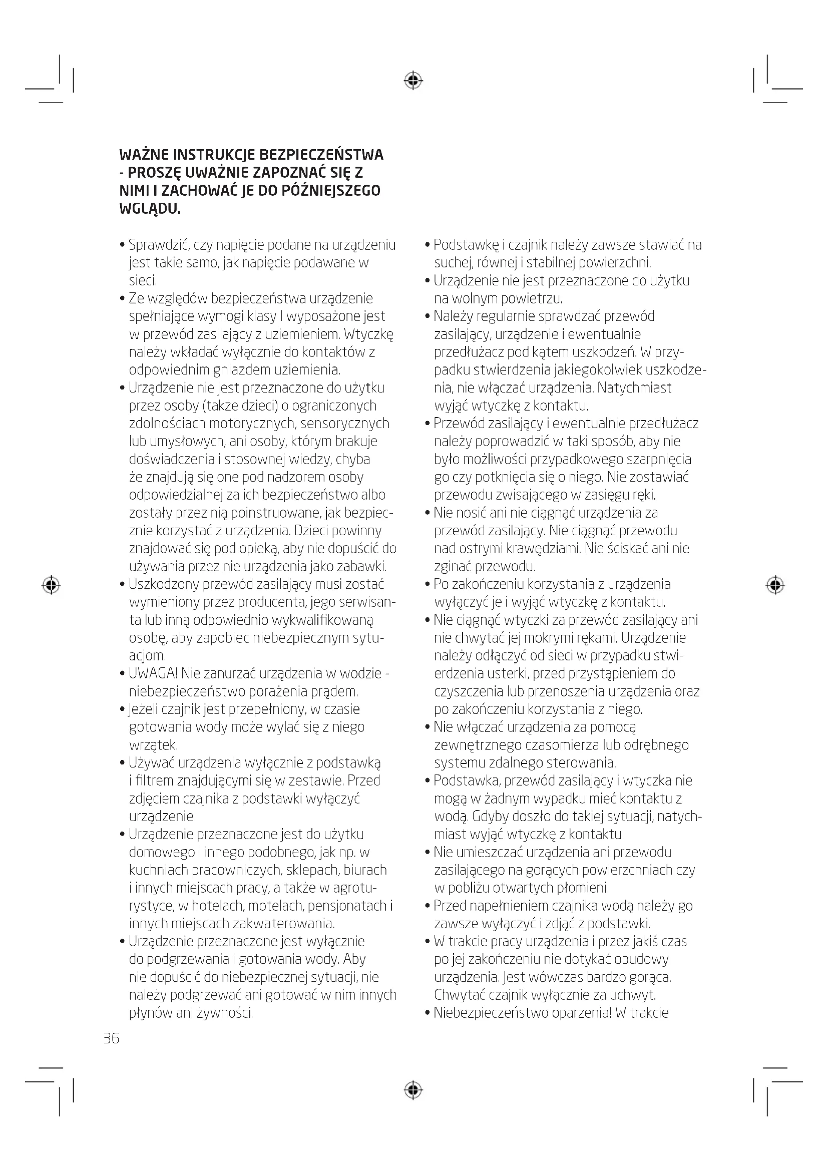 - Urządzenie przeznaczone jest wyłącznie do podgrzewania i gotowania wody. Aby nie dopuścić do niebezpiecznej sytuacji, nie należy podgrzewać ani gotować w nim innych płynów ani żywności.
