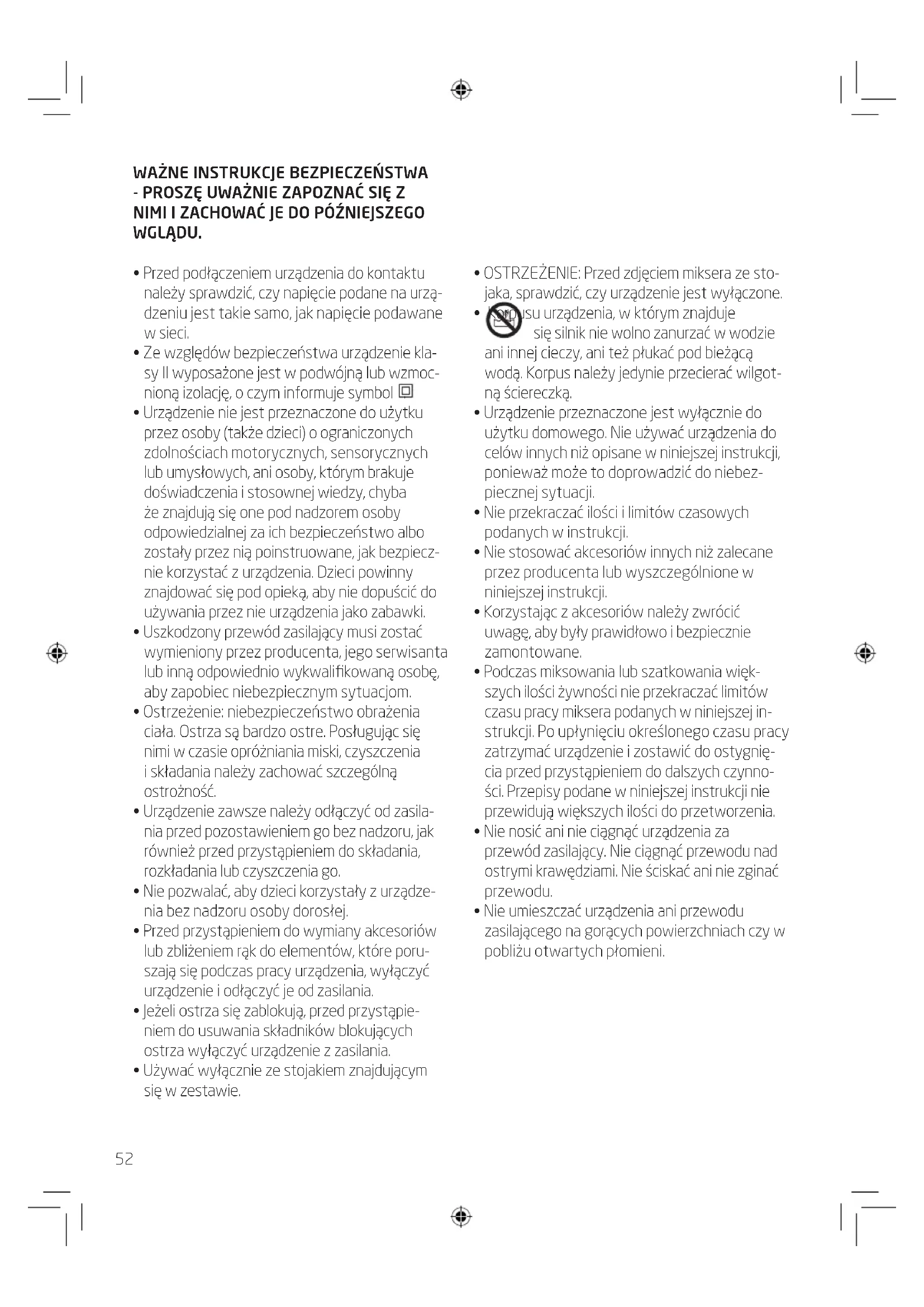 Urzadzenia przyznaczone wyłęcznych do przyte-warzania produktów spożywczych. Uzywać zgodnia z instrukcji. Nieprawidowej uzywanie要去 spowodstaw zagrozenia oraz uniewaźnietà gwarancji. Przejstręgać instrukcji bezpieczność.