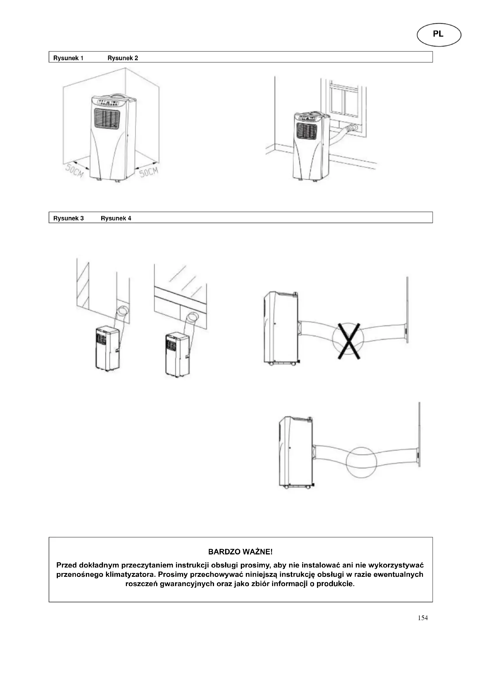 BARDZO WAŻNE! Przed dokładnym przeczytaniem instrukcji obsługi prosimy, aby nie instalować ani nie wykorzystywać przenośnego klimatyzatora. Prosimy przechowywać niniejszą instrukcję obsługi w razie ewentualnych roszczeń gwarancyjnych oraz jako zbiór informacji o produkcie.