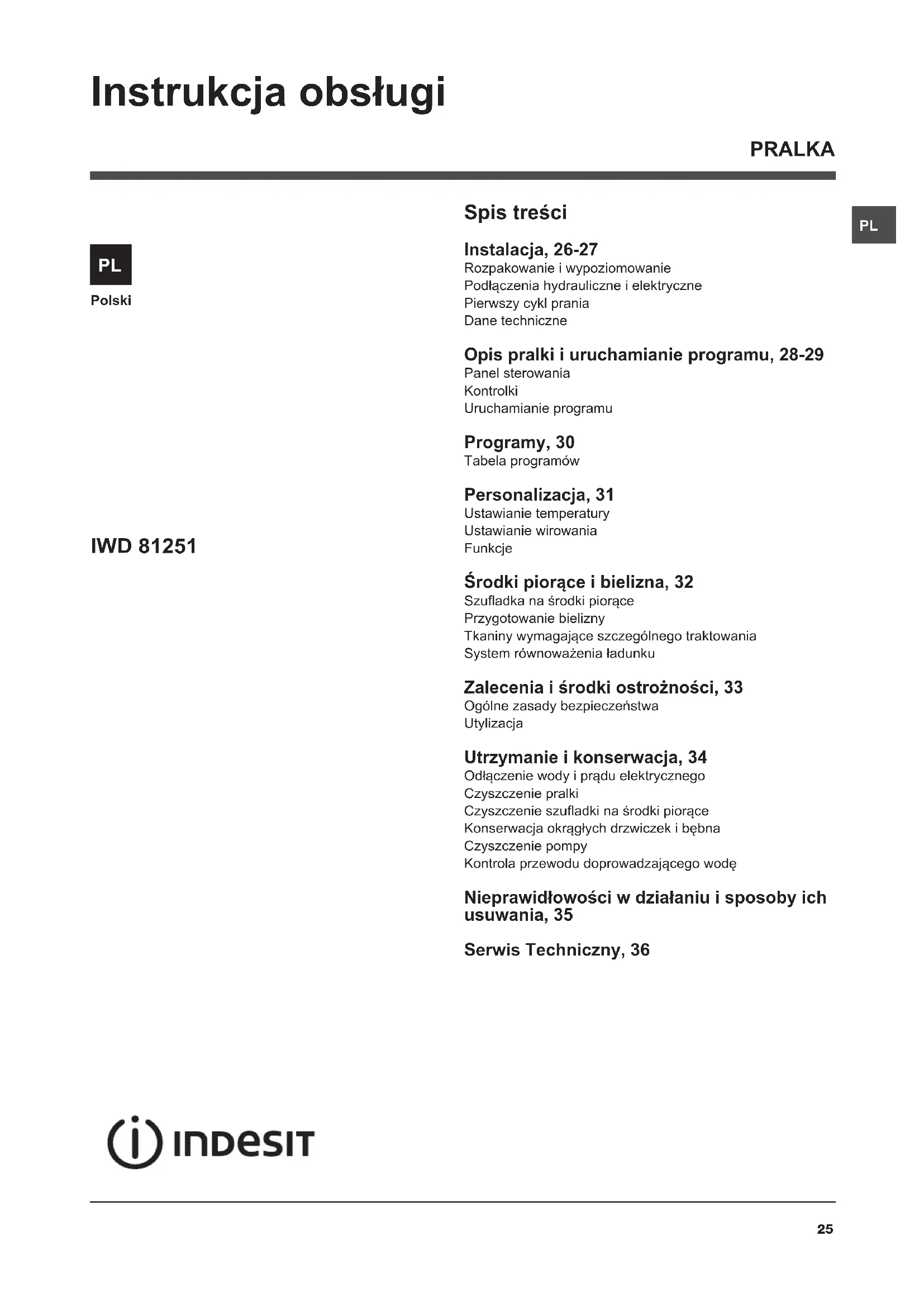 IWD 81251 C ECO - Pralka INDESIT - Bezpłatna instrukcja obsługi