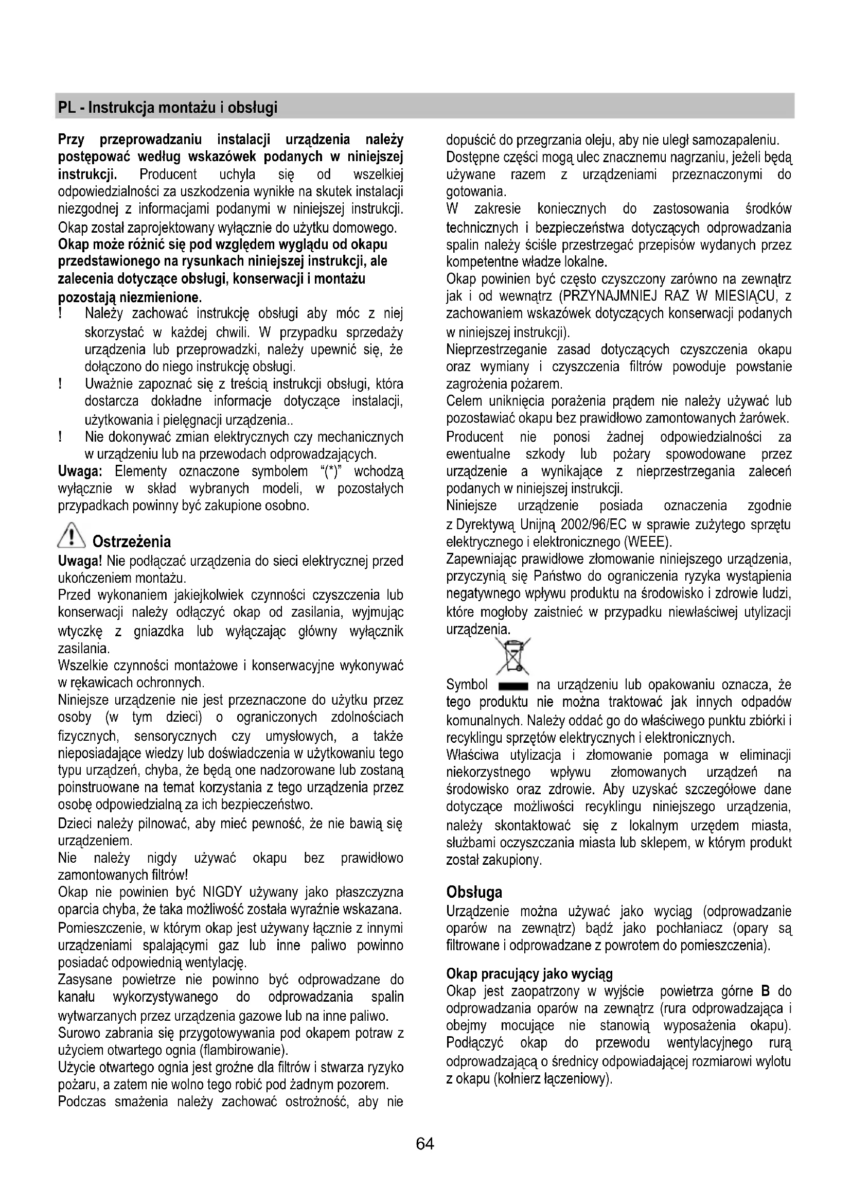 PL Instrukcja montazu i obslugi