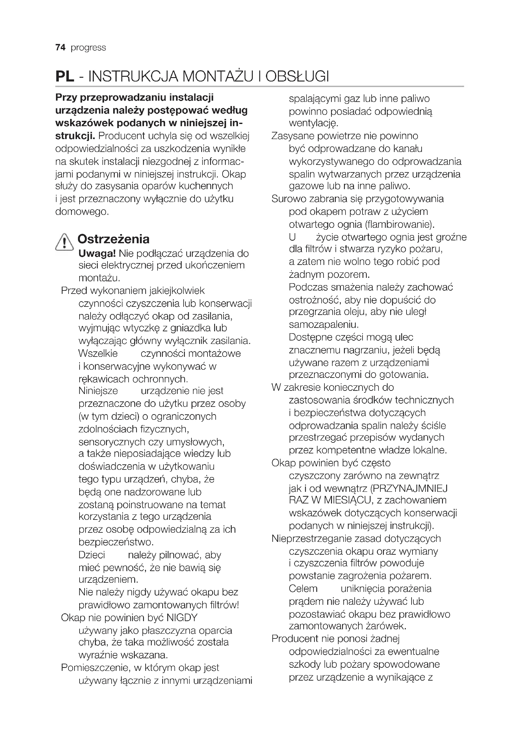 PDV9065E - Okap kuchenny PROGRESS - Bezpłatna instrukcja obsługi