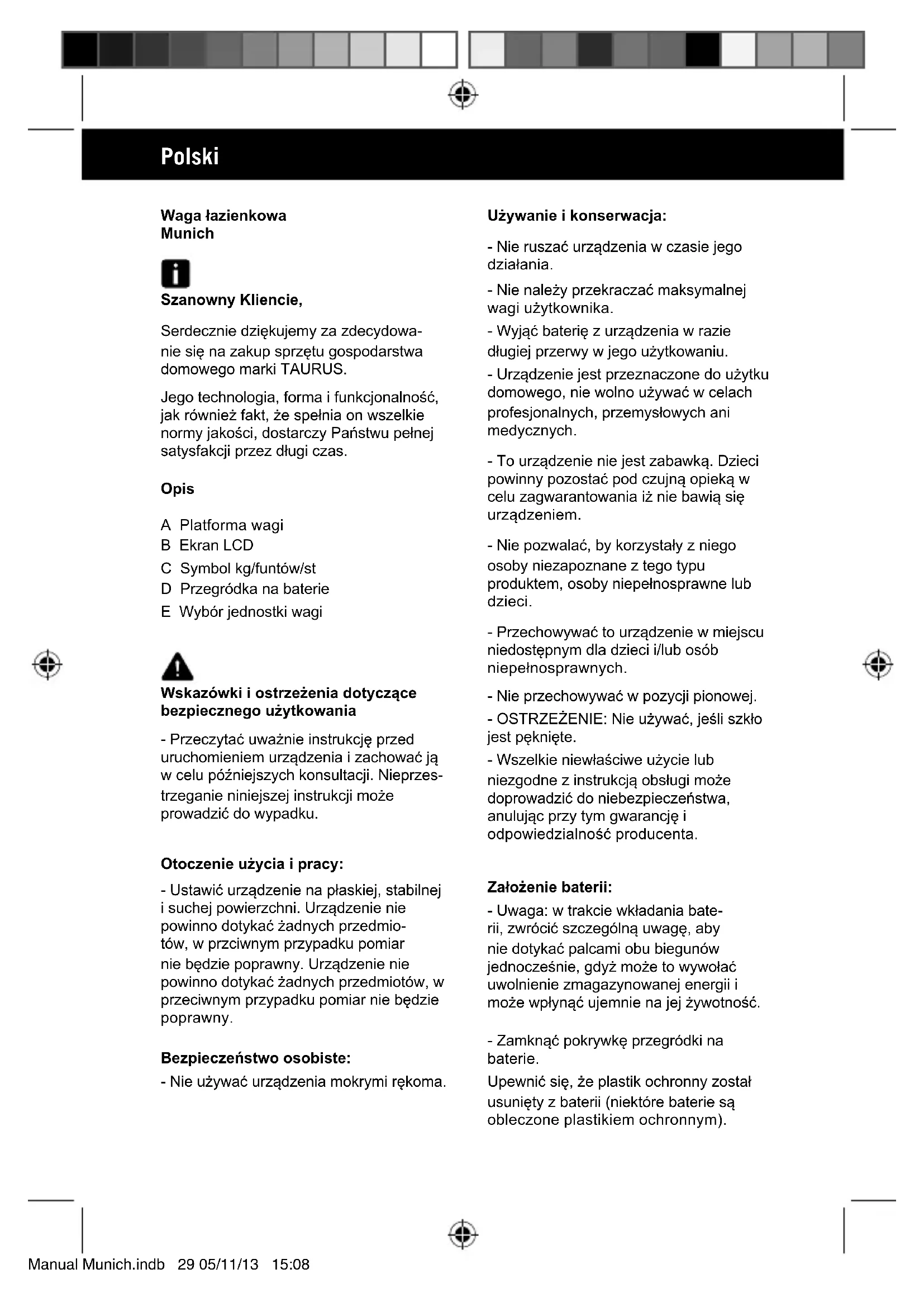 Znajdź bezpłatnie instrukcję urządzenia Munich TAURUS w formacie PDF.