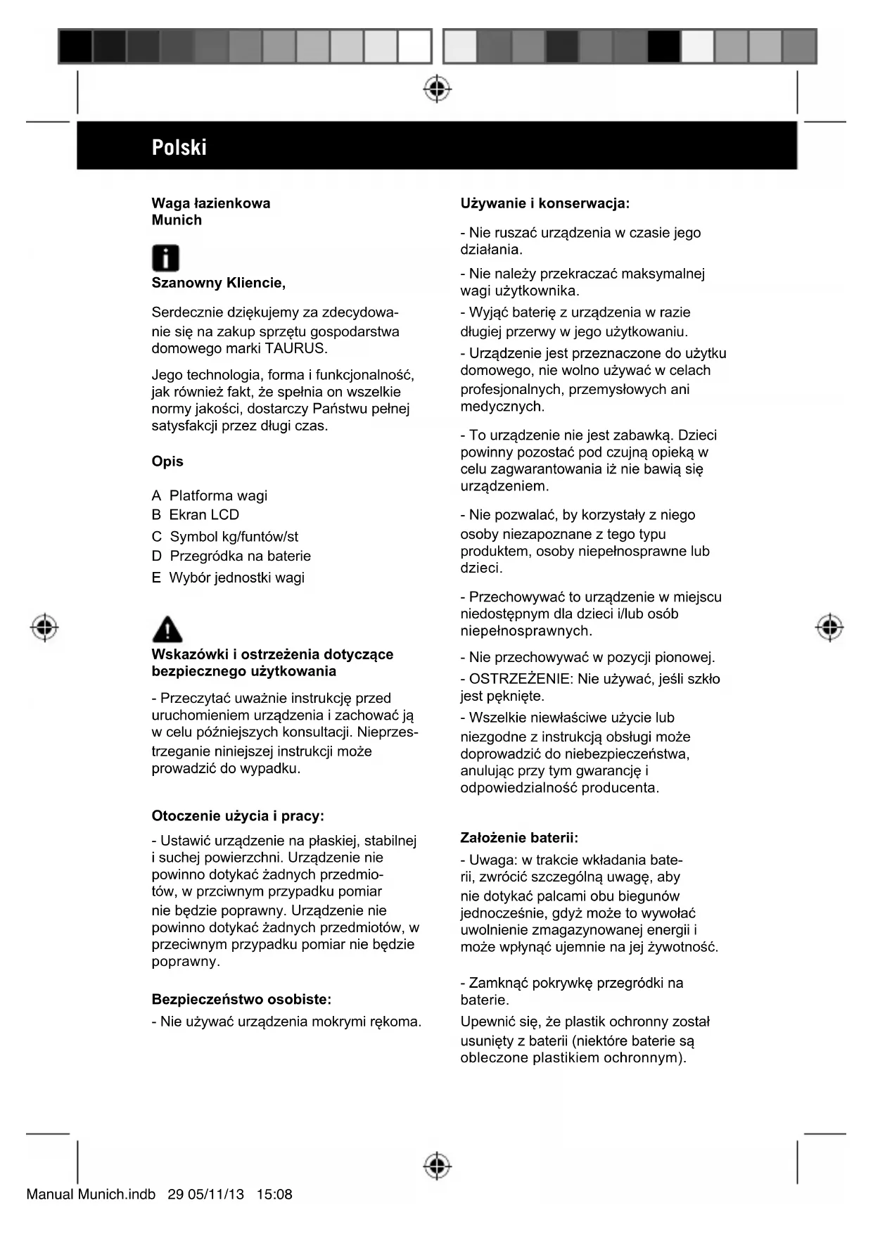 Pobierz instrukcję dla swojego Waga kuchenna w formacie PDF za darmo! Znajdź swoją instrukcję Dublin - TAURUS i weź swoje urządzenie elektroniczne z powrotem w ręce. Na tej stronie opublikowane są wszystkie dokumenty niezbędne do korzystania z urządzenia. Dublin marki TAURUS.