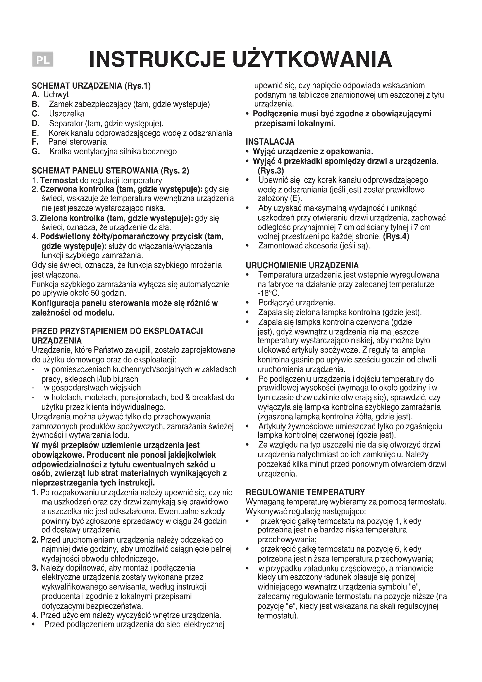 Urządzenie,którePaństwozakupili,zostałozaprojektowane doużytkudomowegoorazdoeksploatacji: - wpomieszczeniachkuchennych/socjalnychwzakładach pracy,sklepachi/lubbiurach - wgospodarstwachwiejskich - whotelach,motelach,pensjonatach,bed&breakfastdo użytkuprzezklientaindywidualnego. Urządzeniamożnaużywaćtylkodoprzechowywania zamrożonychproduktówspożywczych,zamrażaniaświeżej żywnościiwytwarzanialodu.