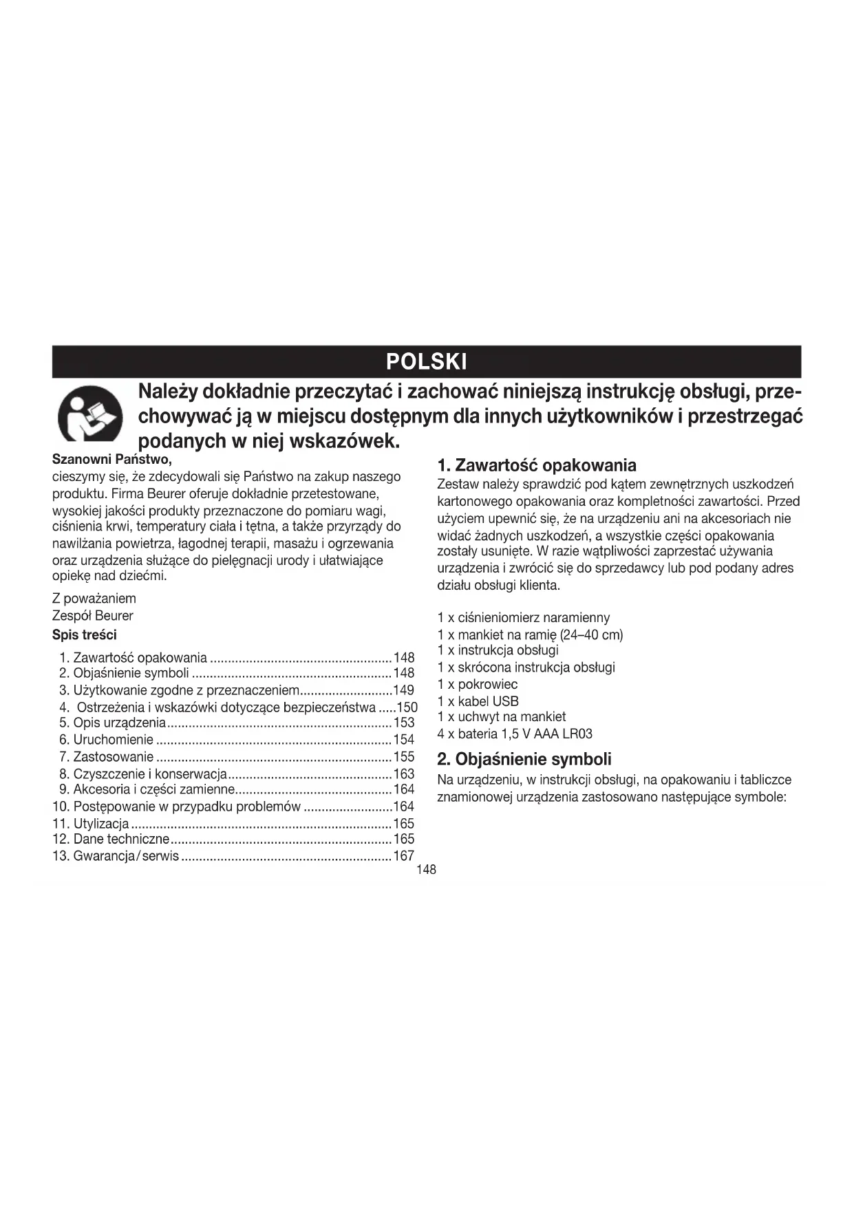 1.Zawartosc opakowania 148