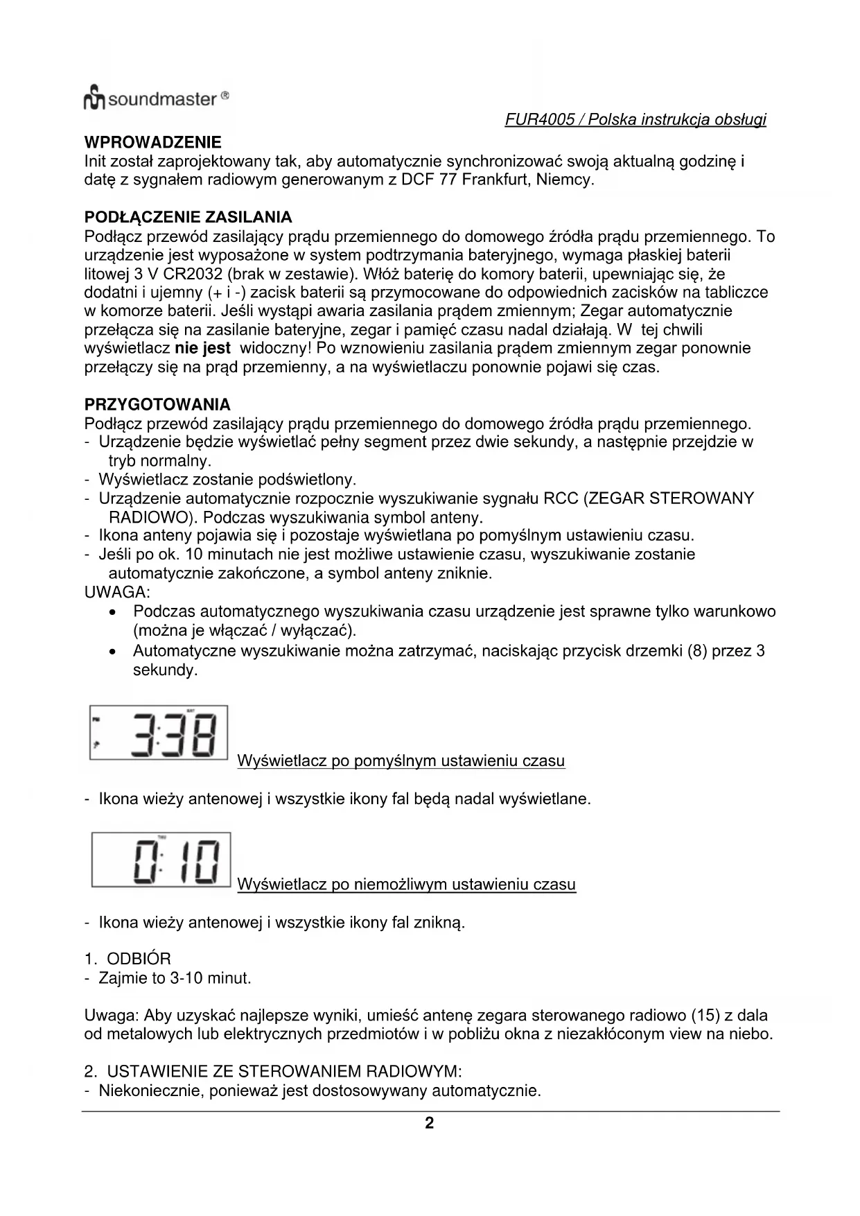 INSTRUKCJA OBSŁUGI FUR4005 Soundmaster