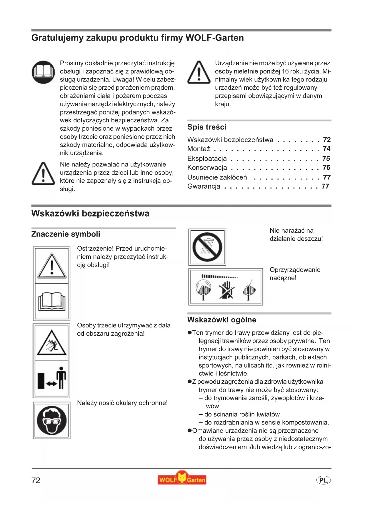 - Naprawy urzadzenia moga byc prowadzone tylko przystace serwisowe firmy WOLF-Garten i autoryzowane warsztaty.