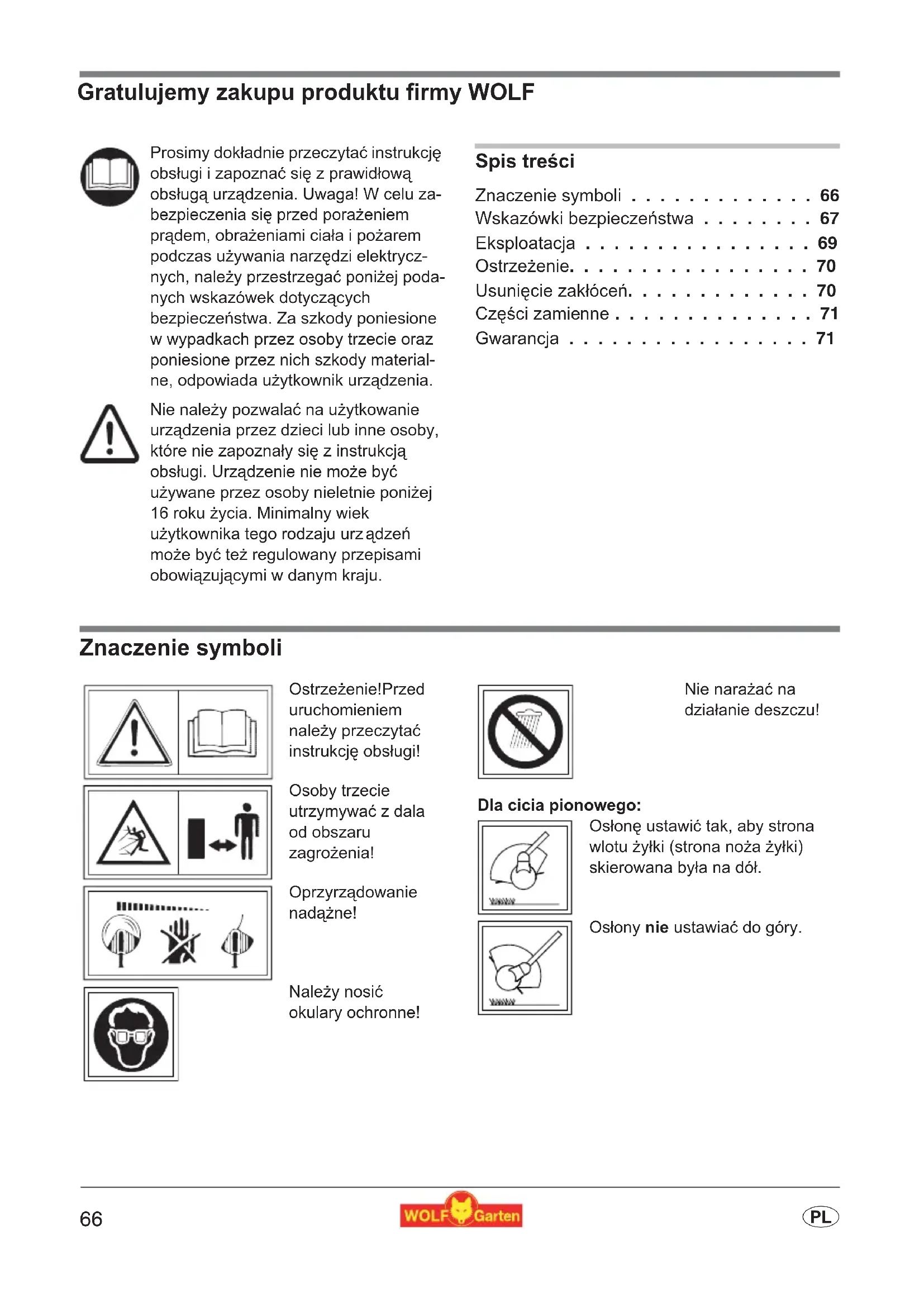 - p Gratulujemy zakupu produktu firmy WOLF Spis treXci Znaczenie symboli p. 66