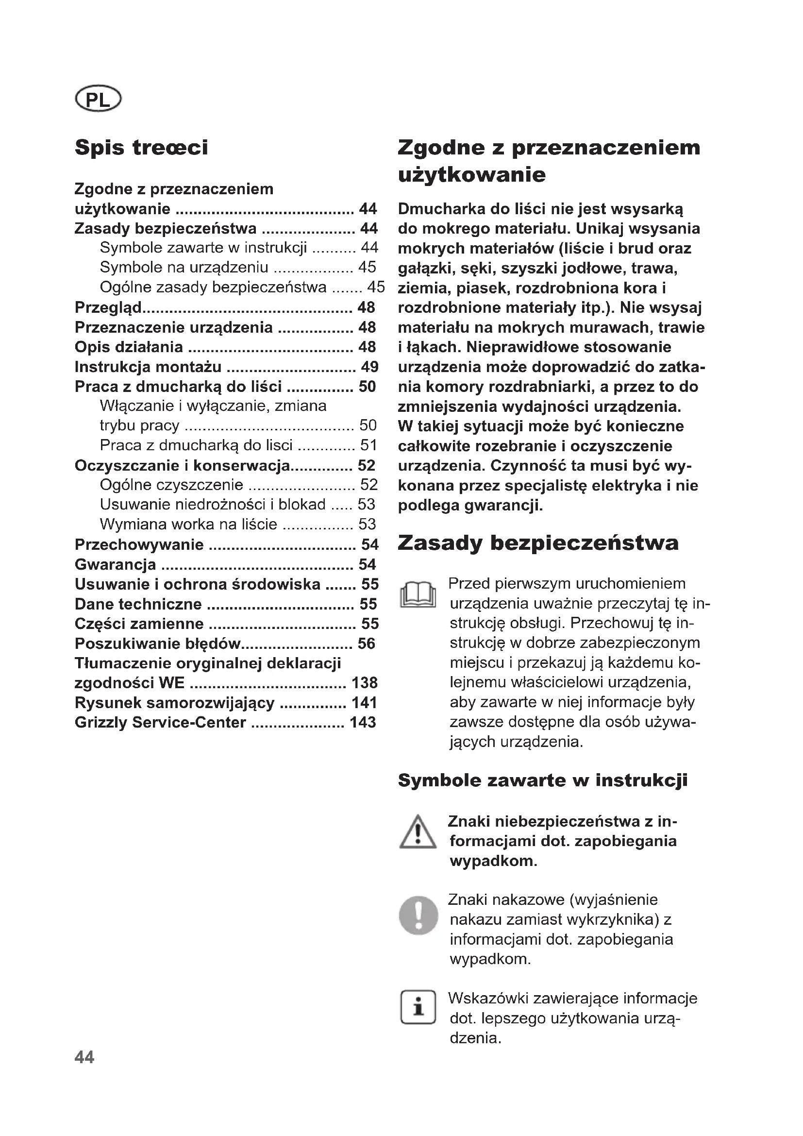 Tlumaczenie oryginalnej instrukcji obstugi 44