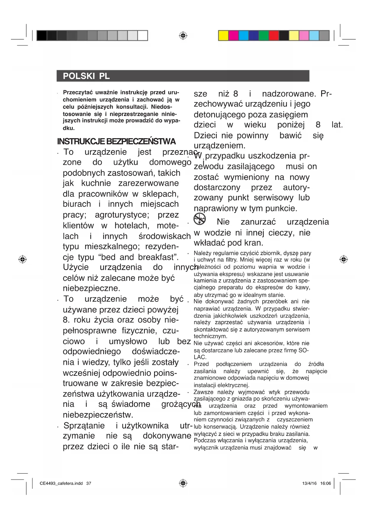 Znajdź bezpłatnie instrukcję urządzenia CE4493 SOLAC w formacie PDF.