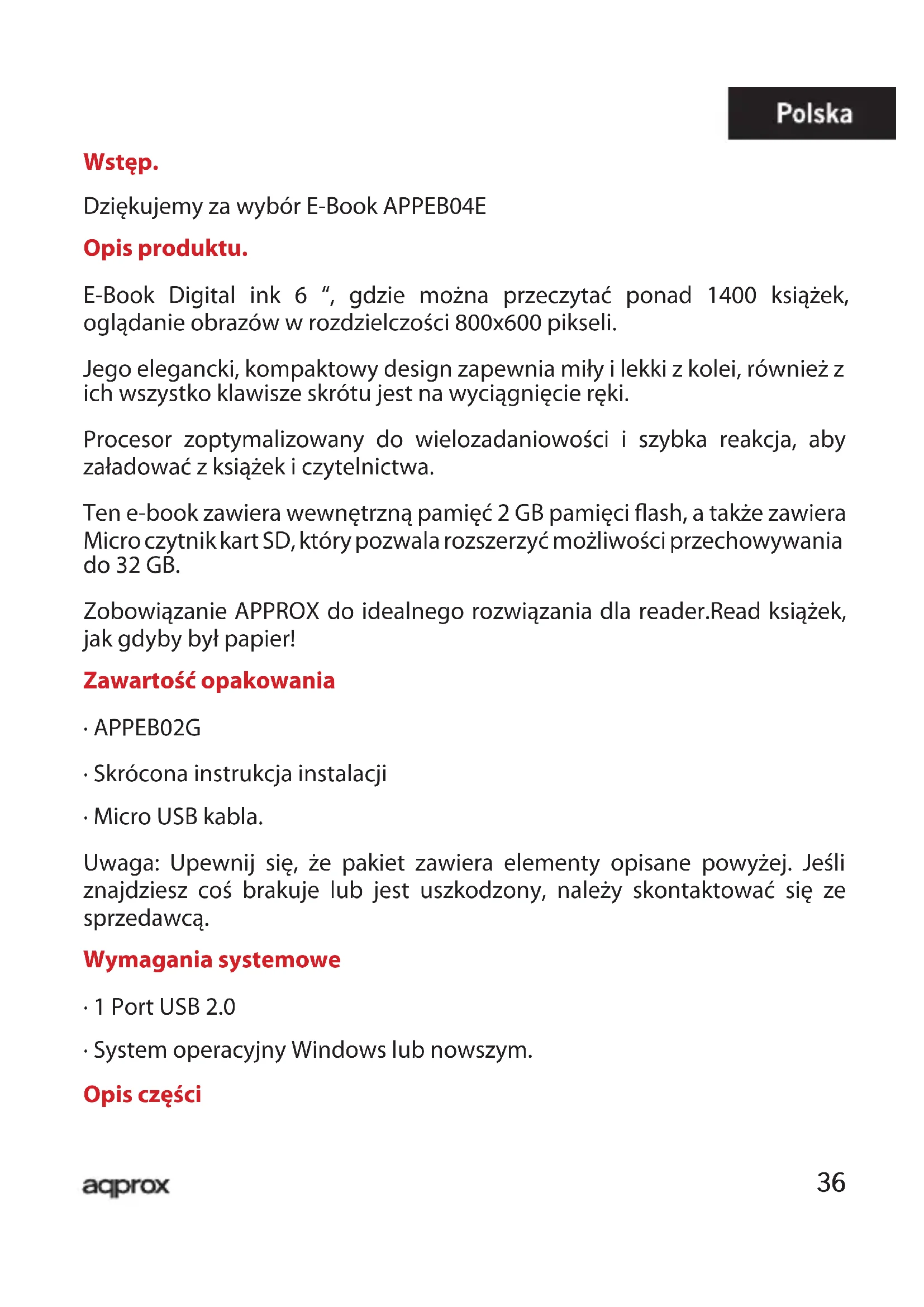 APPEB04E - Czytnik e-booków Approx - Bezpłatna instrukcja obsługi