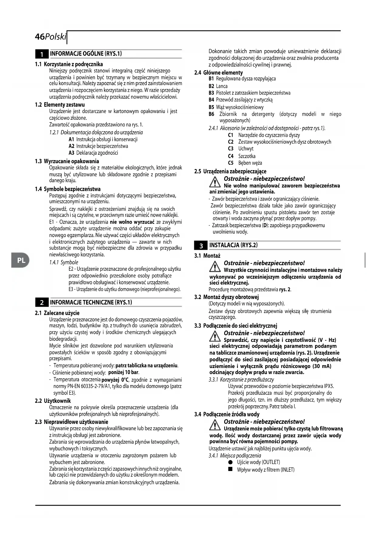 Przed przystąpieniem do instalacji bądź użycia myjki należy dokładnie przeczytać niniejszy podręcznik, zwracając szczególną uwagę na treść części dotyczącej INSTRUKCJI BEZPIECZEŃSTWA