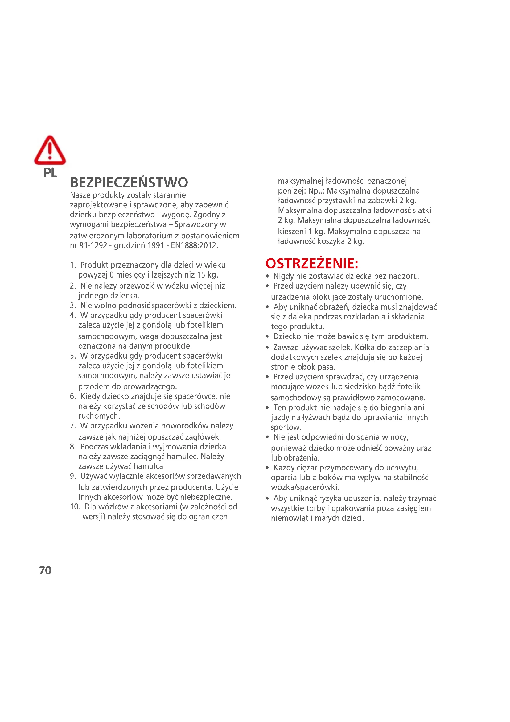 BEZPIECZEŃSTWO Nasze produkty zostały starannie zaprojektowane i sprawdzone, aby zapewnić dziecku bezpieczeństwo i wygodę. Zgodny z wymogami bezpieczeństwa – Sprawdzony w zatwierdzonym laboratorium z postanowieniem nr 91-1292 - grudzień 1991 - EN1888:2012.