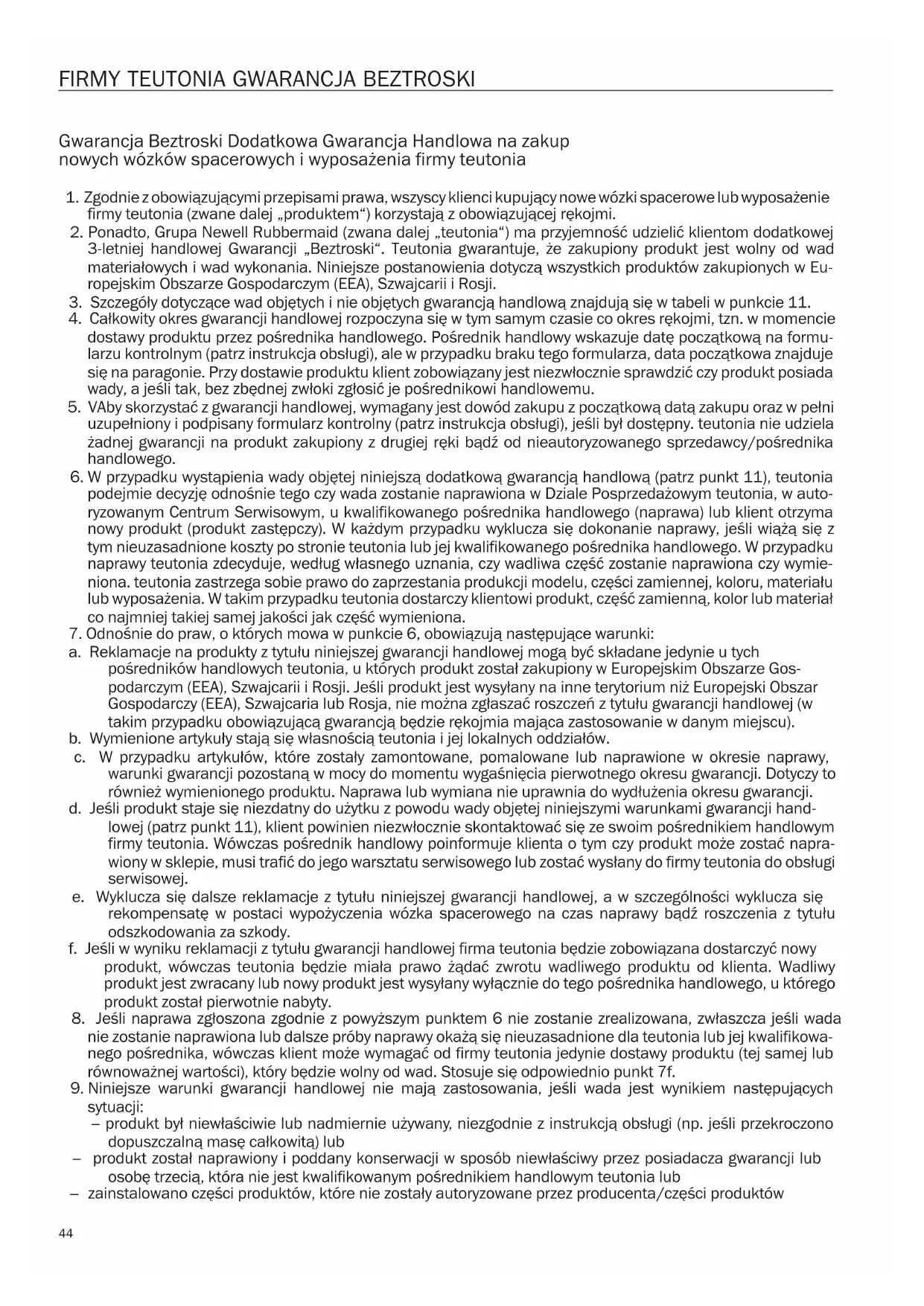Gwarancja Beztroski Dodatkowa Gwarancja Handlowa na zakup nowych wózków spacerowych i wyposażenia firmy teutonia