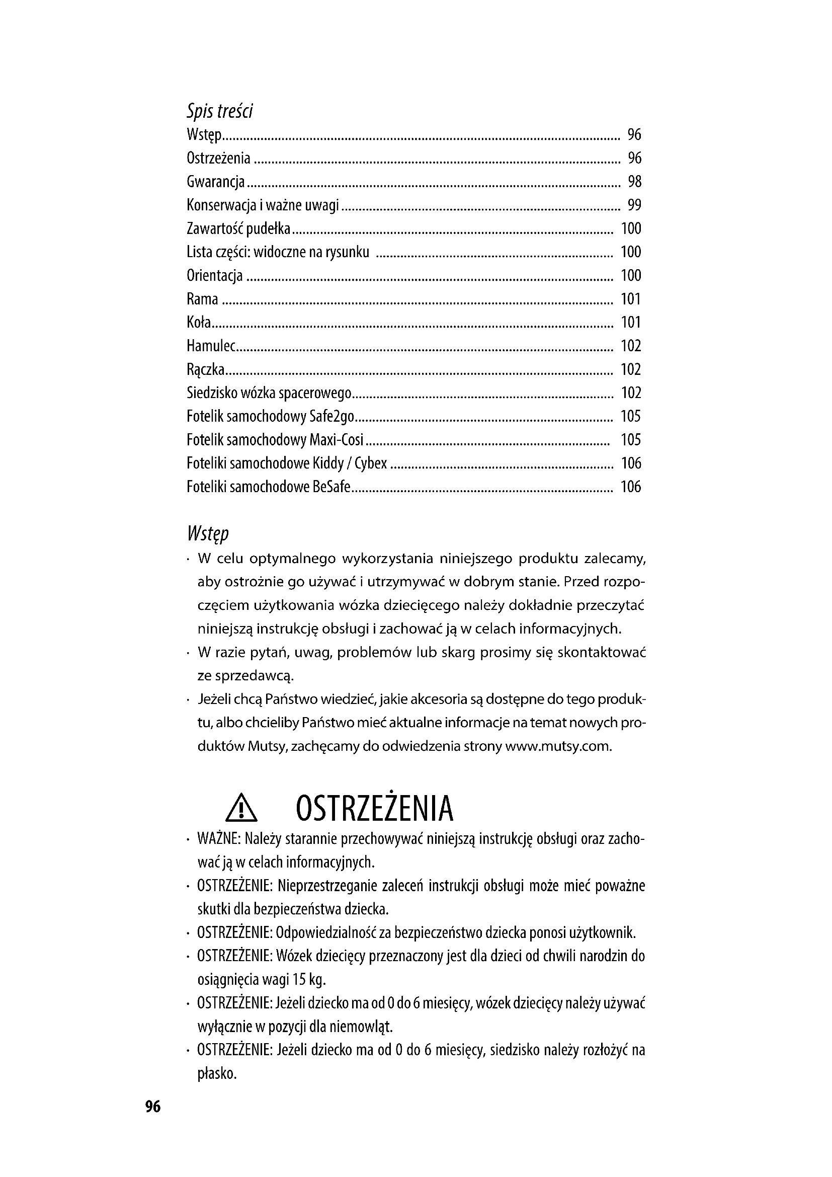 W celu optymalné go wykorzystania niniejszego produktuazolecamy, aby ostrożnie go uzywać i utrzmywać w dobrym stanie. Przed Rozpoczeciem uzytkowania wozka;dziecięcego naleź doktadnie przyȩczytań niniejsza instrukcję obstogi i zachować ja w celach informocyjnych.
