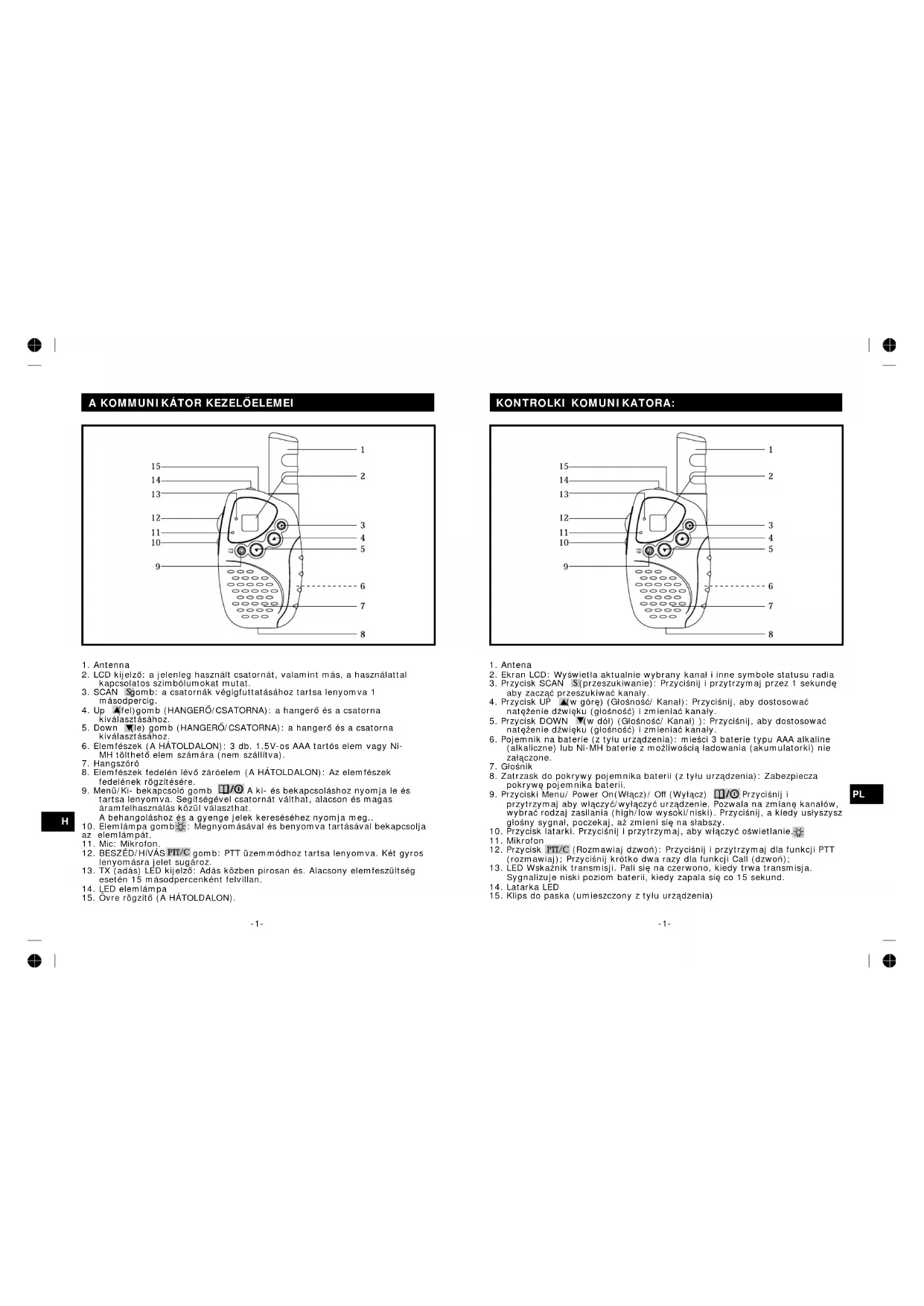 15. Övre rögzítő (A HÁTOLDALON).Kiedy komunikator nie jest używany, oszczędzaj baterie przyciskając przycisk