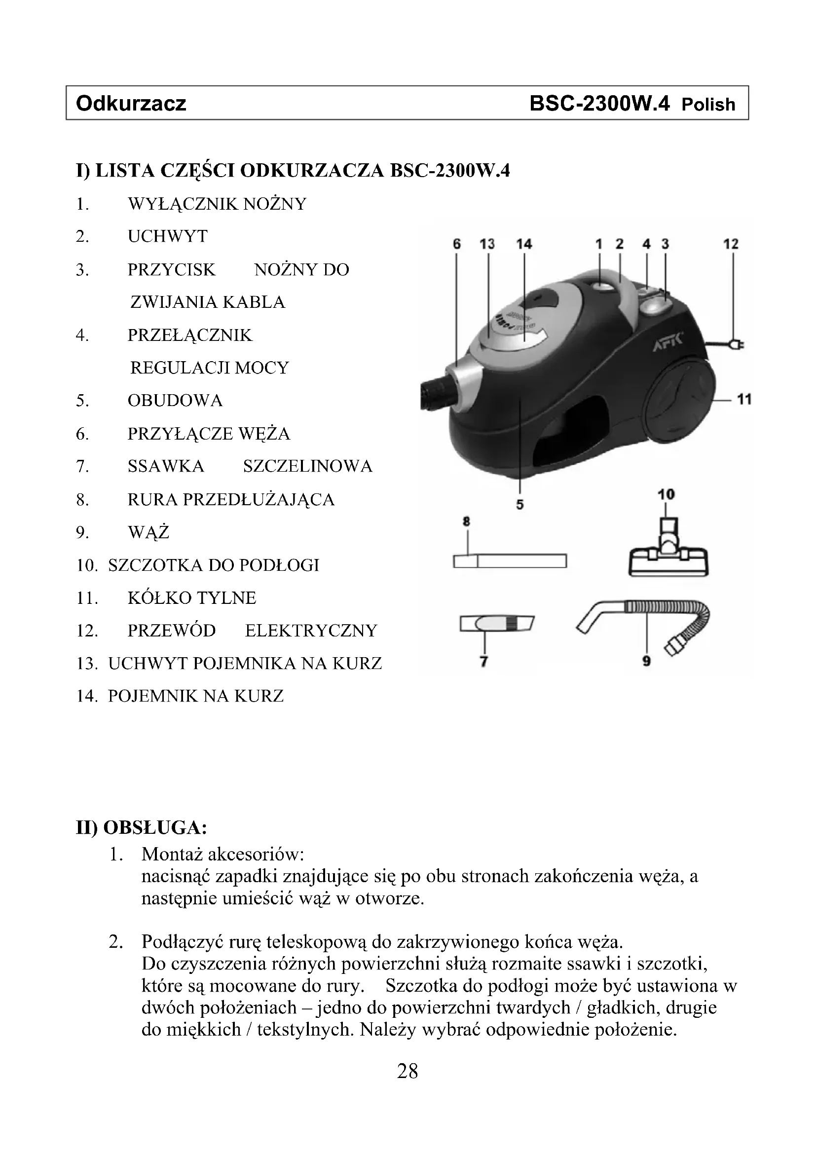 BSC2300W.4 - Odkurzacz AFK - Bezpłatna instrukcja obsługi