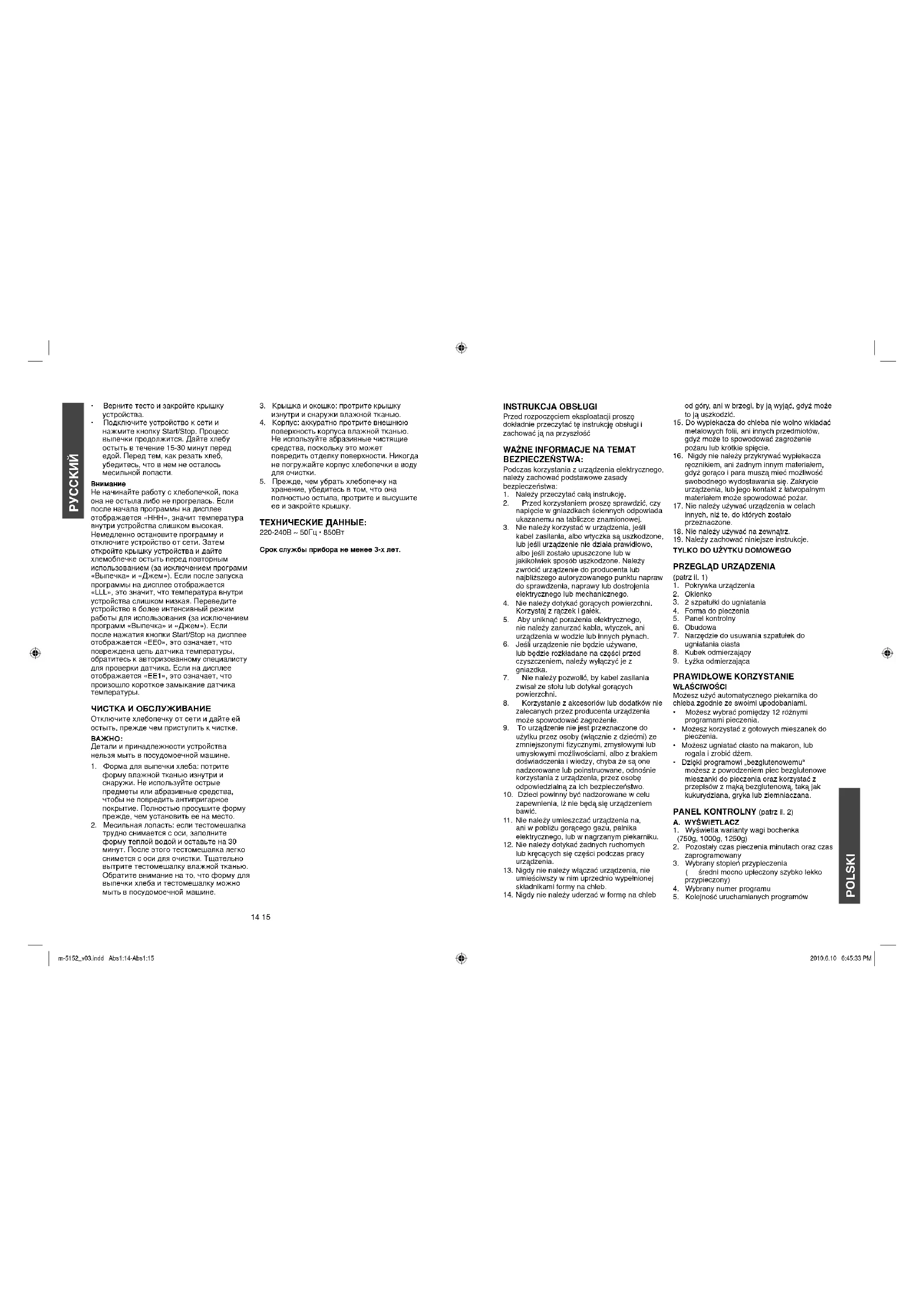 Oznaczenie na wyświetlaczu pokaże, czy został wybrany niski, średni, czy mocny stopień przypieczenia. Możesz także wybrać ustawienie „Szybko“, by skrócić czas pieczenia. m-5152_v03.indd Abs1:16-Abs1:17m-5152_v03.indd Abs1:16-Abs1:17 2010.6.10 6:45:33 PM2010.6.10 6:45:33 PM18 19 POLSKI POLSKI Uwaga: W programach 6, 7, 11 funkcja „stopnia przypieczenia“ i „Szybko“ nie są dostępne.