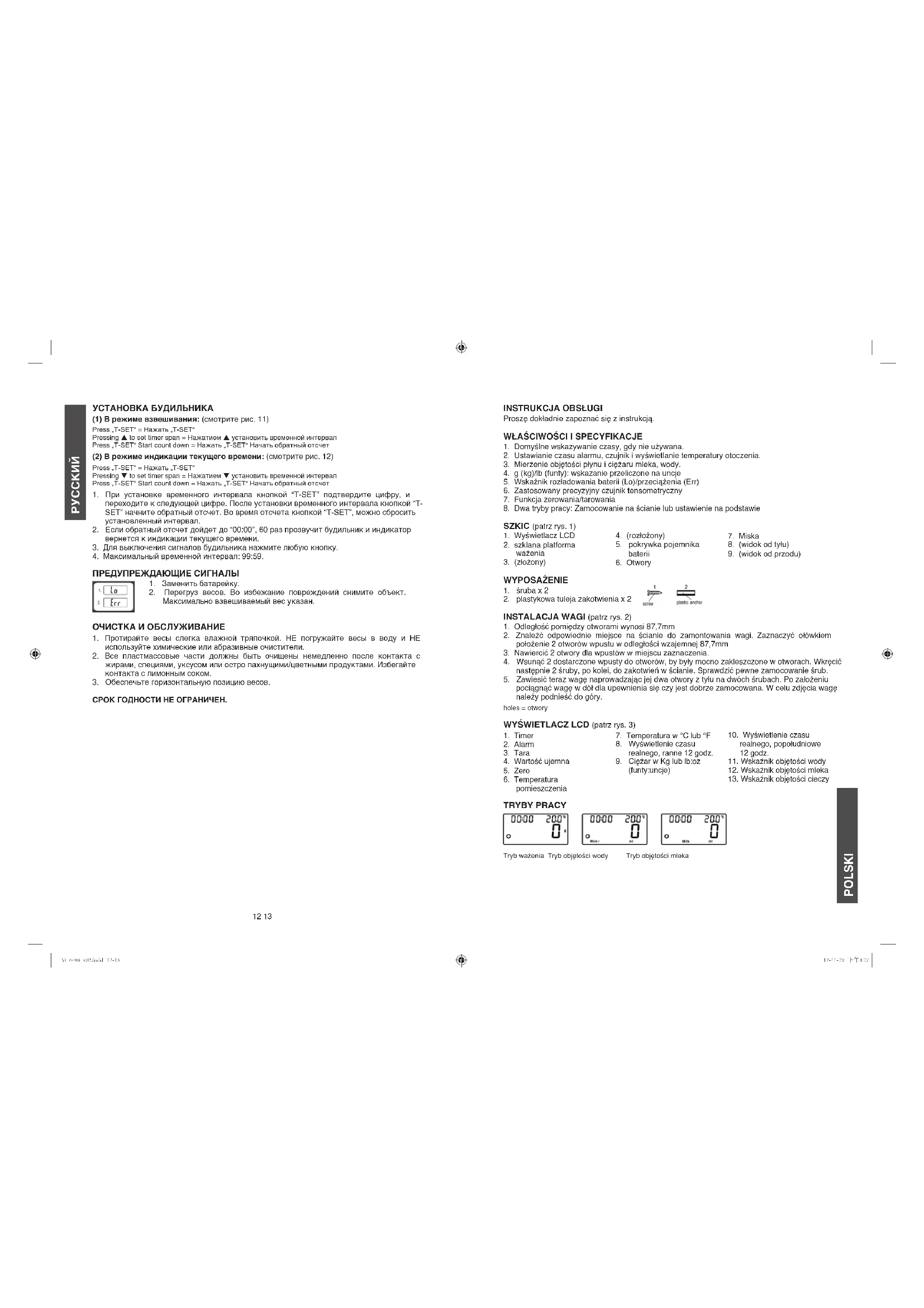 gdy suma wszystkich ciężarów przekracza 4% maksymalnej nośności wagi. (4%=80g jeśli nośność jest 2kg; 120g jeśli nośność jest 3kg) LCD pokaże “0g” za każdym wciśnięciem Z/T. Pokaże się symbol “TARE” w lewym dolnym rogu LCD, wskazując, że aktywna jest funkcja “TARE”. Maks. nośność wagi jest odpowiednio zredukowana przez sumaryczny ciężar już znajdujących się na niej obiektów. M_6408_v02.indd 14-15 12-11-29 下午4:2716 17 POLSKI SCG/CRO/B.i.H.