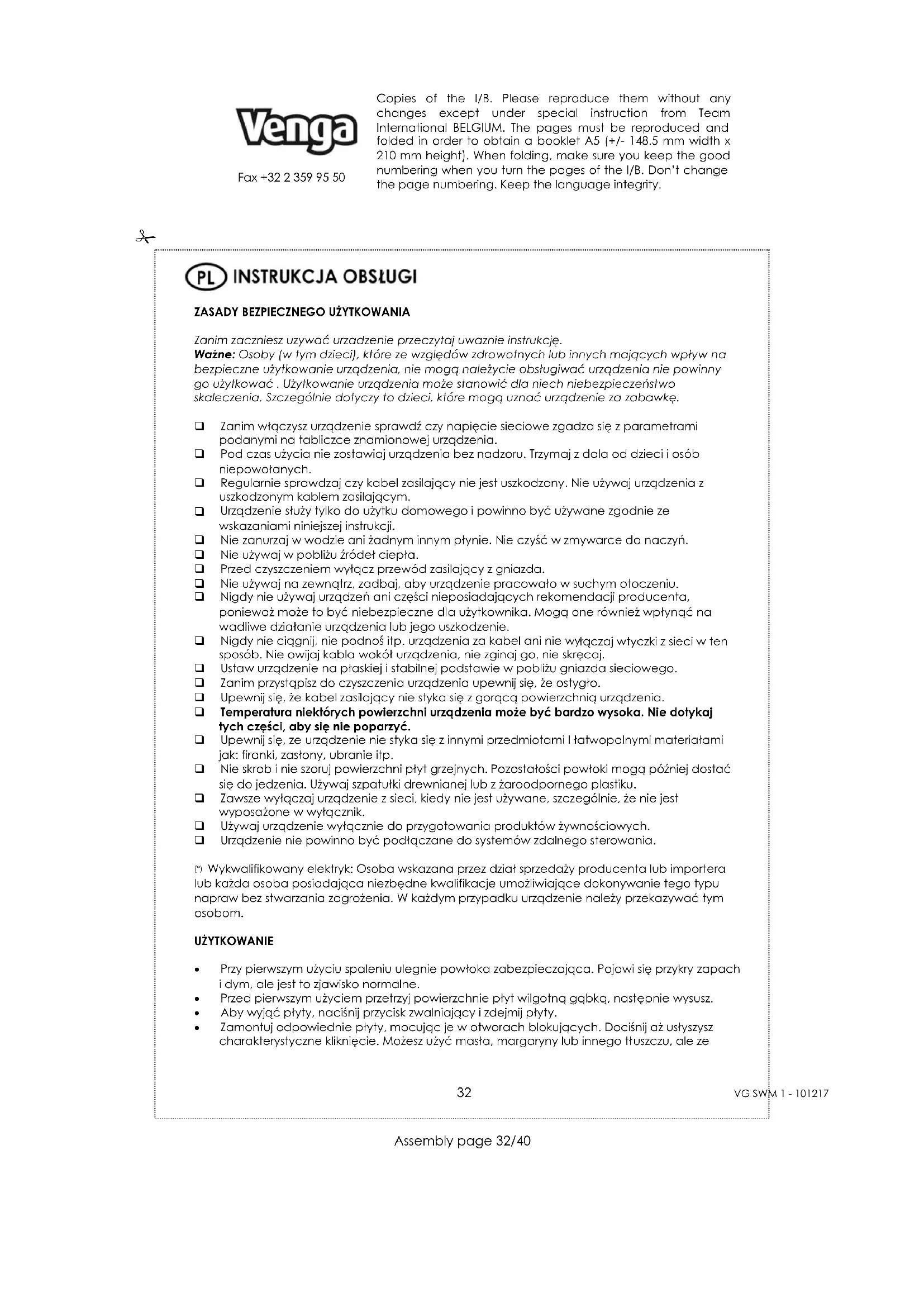 INSTRUKCJA OBSŁUGI VG SWM 1 Venga