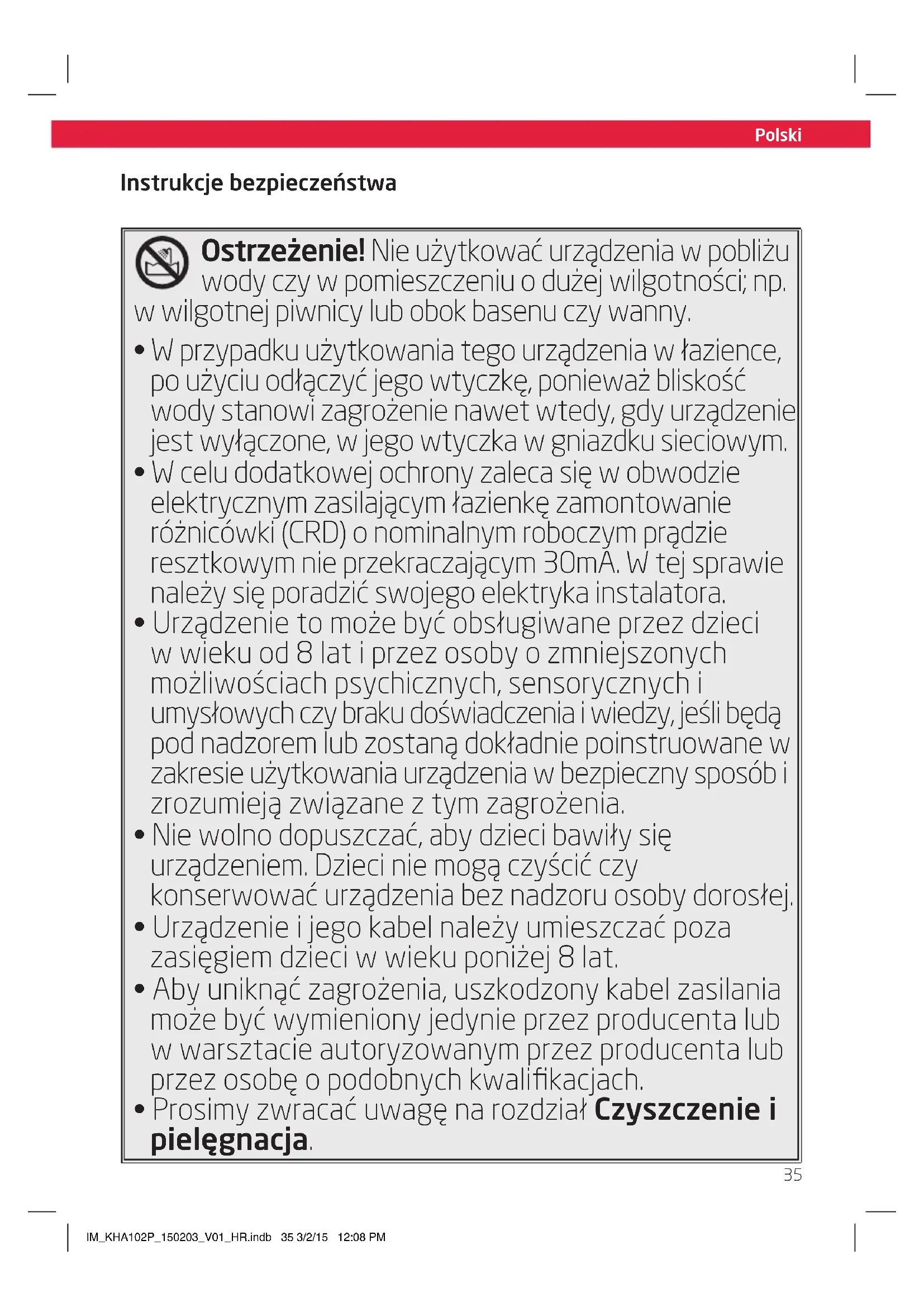 - W przypadku uzytkowaniakiego urzadzenia wierziance, po uzyciu odźaczyć seinen wtyczke, poniewaz bliskość wody stanowy zagrozenia nowet wtedy, gdy urzadzenia jest wyłączone, w seinem wtyczka wgniazdku sieciowym.
