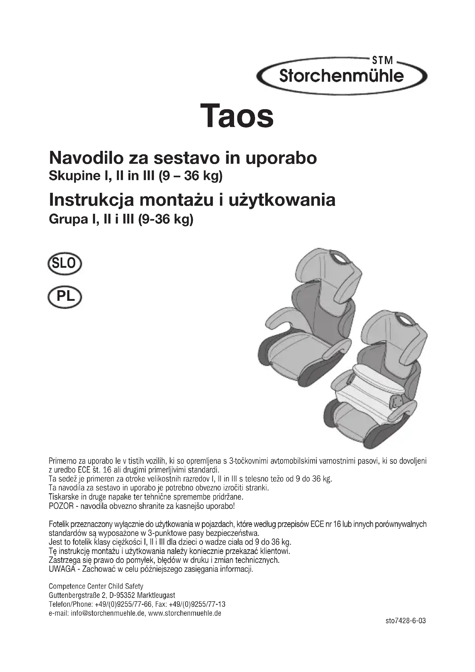 Taos - Fotelik samochodowy Storchenmuhle - Bezpłatna instrukcja obsługi