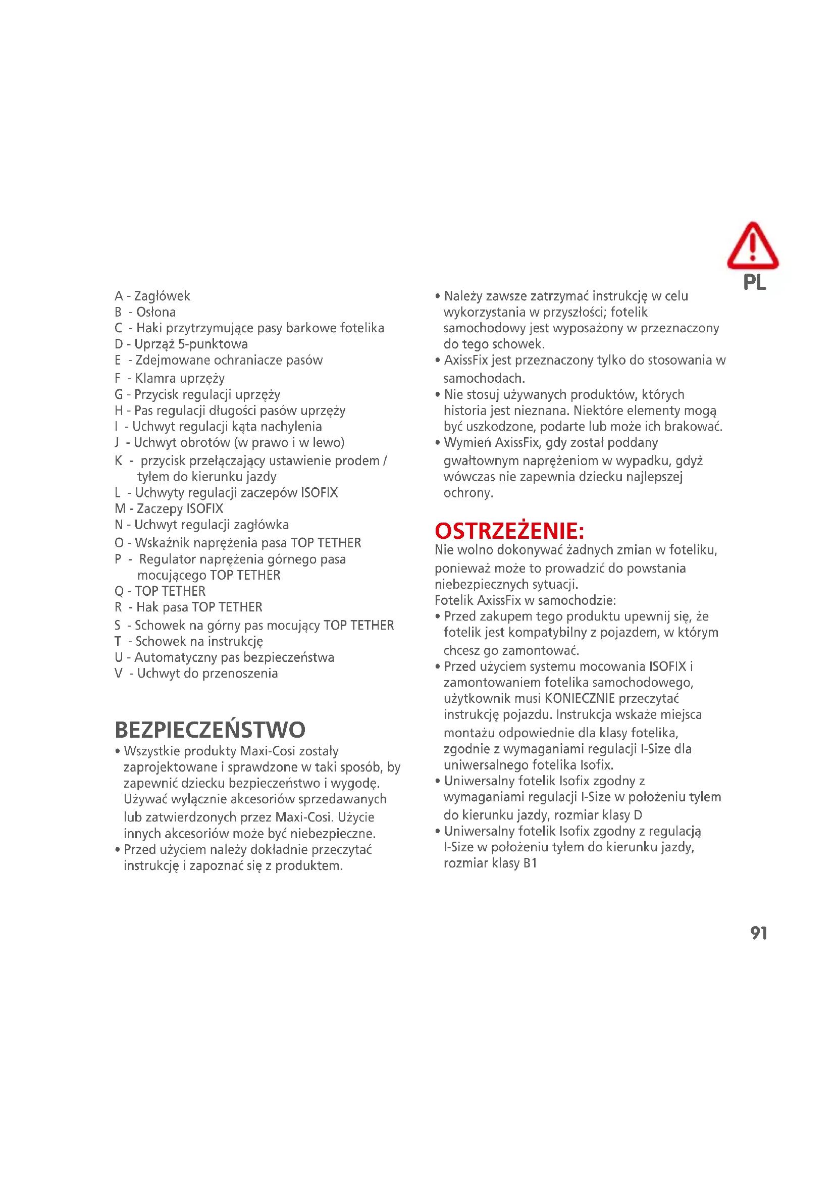 - Wszystkie produkty Maxi-Cosi zostały zaprojektowane i sprawdzone w taki sposób, by zapewnić dziecku bezpieczeństwo i wygodę. Używać wyłącznie akcesoriów sprzedawanych lub zatwierdzonych przez Maxi-Cosi. Użycie innych akcesoriów może być niebezpieczne.