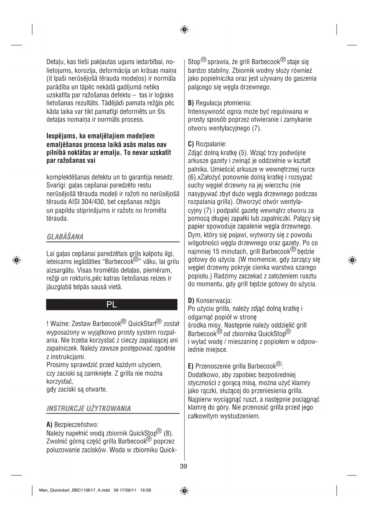 ! Waźne: Zestaw Barbecook® QuickStart® został wyposażony w wyjątkowo prosty system rozpalania. Nie trzeba korzystać z cieczy zapalającej ani zapalniczek. Należy zawsze postępować zgodnie z instrukcjami.