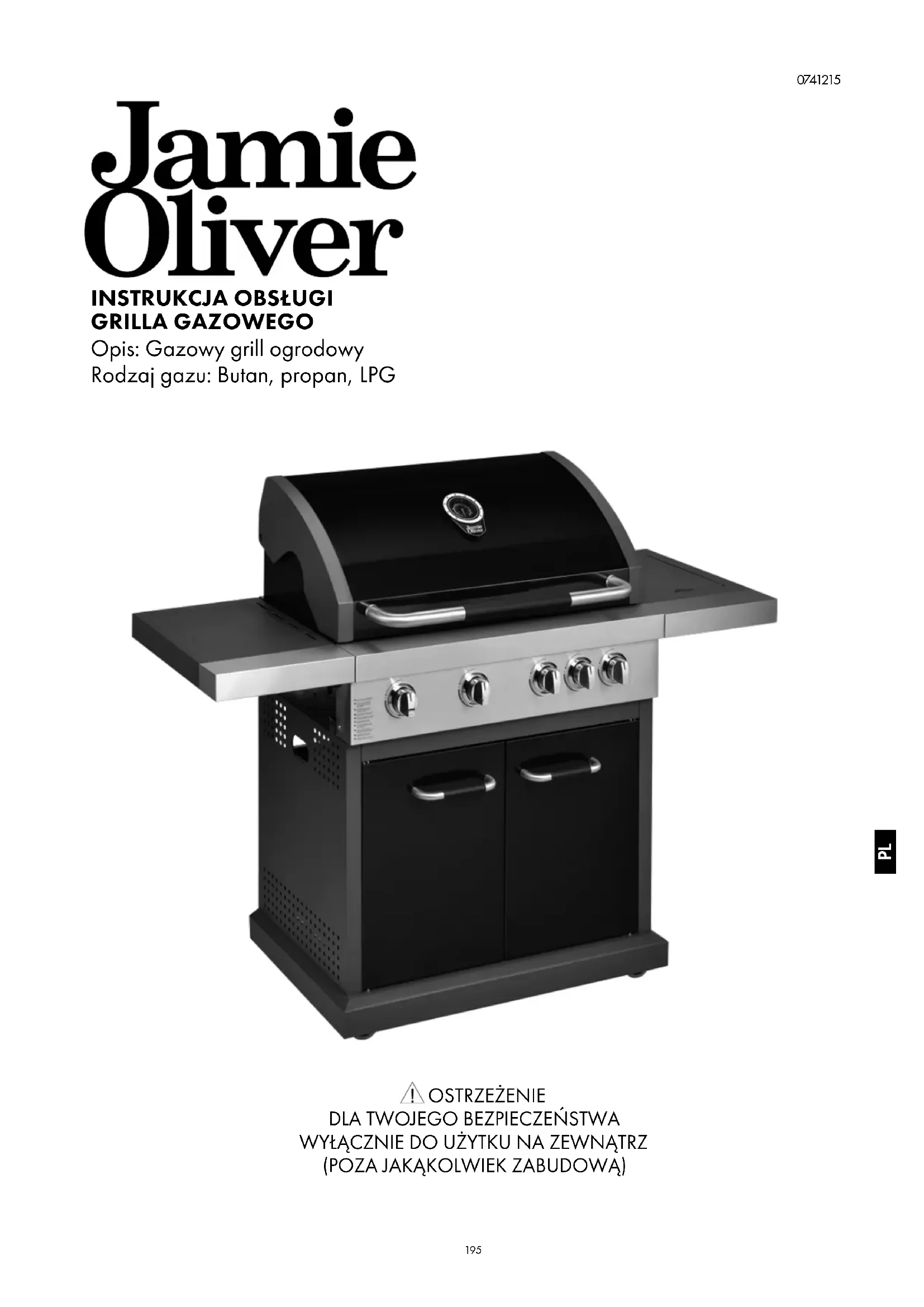 Należy uważnie przeczytać niniejszą instrukcję oraz upewnić się, że grill jest zainstalowany, zmontowany, utrzymywany i serwisowany zgodnie z zaleceniami niniejszej instrukcji. Niezastosowanie się do niniejszej instrukcji może być przyczyną poważnych obrażeń ciała i / lub szkód materialnych. W przypadku jakiekolwiek pytań dotyczących montażu lub obsługi grilla prosimy o kontakt ze sprzedawcą, dostawcą gazu, producentem, przedstawicielem lub pod adresem www. jamieoliverbbq.com. Uwagi dla użytkownika: „WYŁĄCZNIE DO UŻYTKU NA ZEWNĄTRZ” „NALEŻY ZAPOZNAĆ SIĘ Z INSTRUKCJĄ PRZED UŻYCIEM URZĄDZENIA” „OSTRZEŻENIE: DOSTĘPNE ELEMENTY GRILLA MOGĄ BYĆ BARDZO GORĄCE. TRZYMAJ DZIECI Z DALA OD URZĄDZENIA”. „NIE PORUSZAJ URZĄDZENIA PODCZAS UŻYTKOWANIA”. „ODŁĄCZ DOPŁYW GAZU NA BUTLI GAZU PO ZAKOŃCZENIU UŻYTKOWANIA.” INFORMACJE TECHNICZNE MODEL NR PRO 4S (4 palniki + palnik boczny) OPIS: GRILL OGRODOWY CZTEROPALNIKOWY Z PALNIKIEM BOCZNYM CAŁKOWITA MOC CIEPLNA: (WSZYSTKIE KATEGORIE GAZU) 16.9kW (1229g/h) KATEGORIA GAZU: