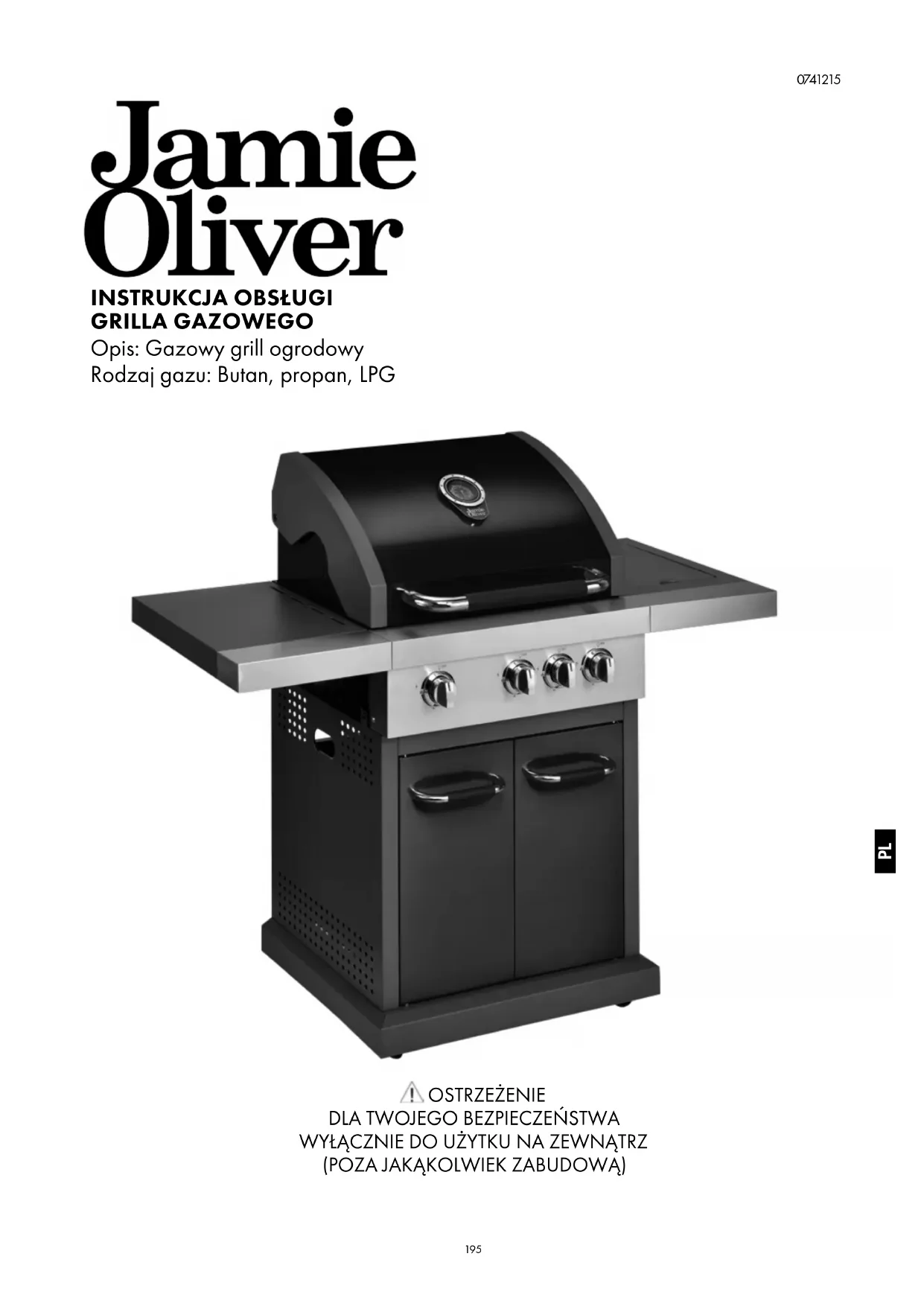 Należy uważnie przeczytać niniejszą instrukcję oraz upewnić się, że grill jest zainstalowany, zmontowany, utrzymywany i serwisowany zgodnie z zaleceniami niniejszej instrukcji. Niezastosowanie się do niniejszej instrukcji może być przyczyną poważnych obrażeń ciała i / lub szkód materialnych. W przypadku jakiekolwiek pytań dotyczących montażu lub obsługi grilla prosimy o kontakt ze sprzedawcą, dostawcą gazu, producentem, przedstawicielem lub pod adresem www. jamieoliverbbq.com. Uwagi dla użytkownika: „WYŁĄCZNIE DO UŻYTKU NA ZEWNĄTRZ” „NALEŻY ZAPOZNAĆ SIĘ Z INSTRUKCJĄ PRZED UŻYCIEM URZĄDZENIA” „OSTRZEŻENIE: DOSTĘPNE ELEMENTY GRILLA MOGĄ BYĆ BARDZO GORĄCE. TRZYMAJ DZIECI Z DALA OD URZĄDZENIA”. „NIE PORUSZAJ URZĄDZENIA PODCZAS UŻYTKOWANIA”. „ODŁĄCZ DOPŁYW GAZU NA BUTLI GAZU PO ZAKOŃCZENIU UŻYTKOWANIA.” INFORMACJE TECHNICZNE MODEL NR PRO 3S (3 palniki + palnik boczny) OPIS: GRILL OGRODOWY CZTEROPALNIKOWY Z PALNIKIEM BOCZNYM CAŁKOWITA MOC CIEPLNA: (WSZYSTKIE KATEGORIE GAZU) 13.3kW (950g/h) KATEGORIA GAZU: