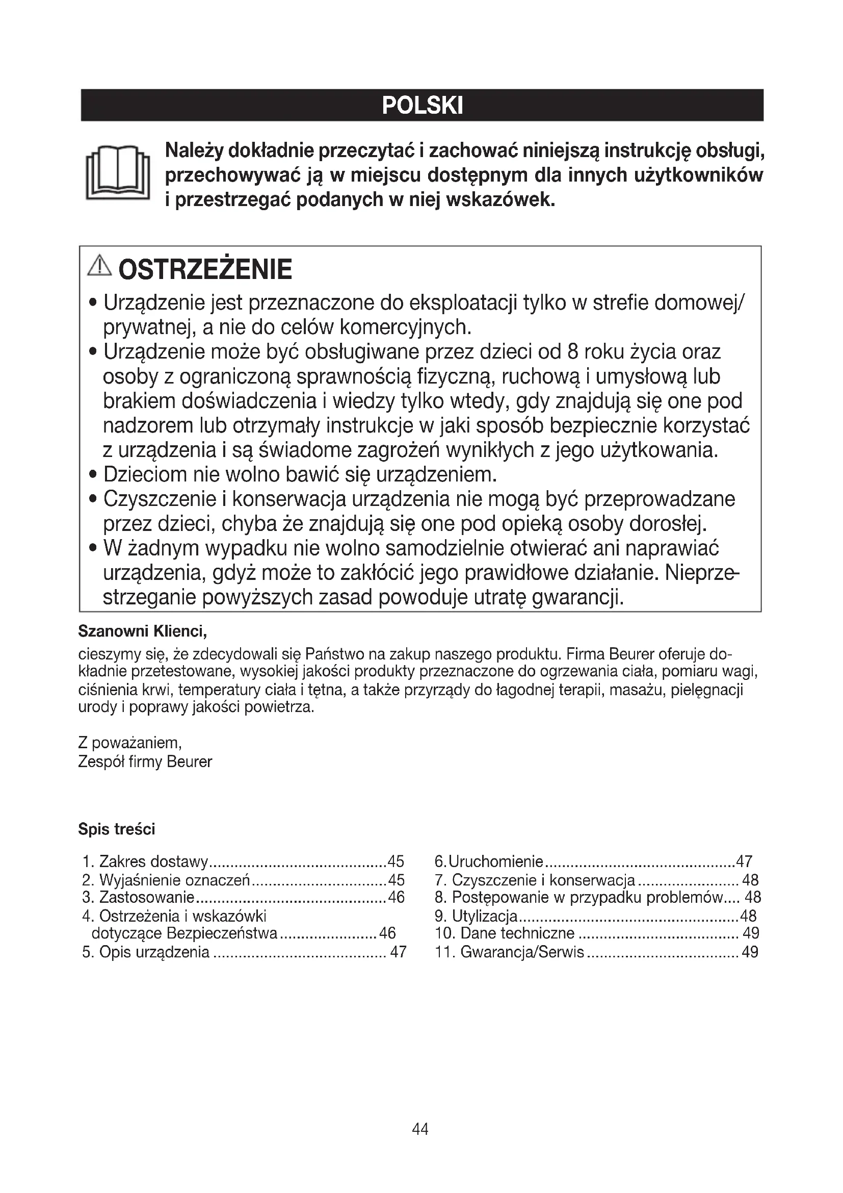 strzeganie powyższych zasad powoduje utratę gwarancji. Szanowni Klienci, cieszymy się, że zdecydowali się Państwo na zakup naszego produktu. Firma Beurer oferuje do