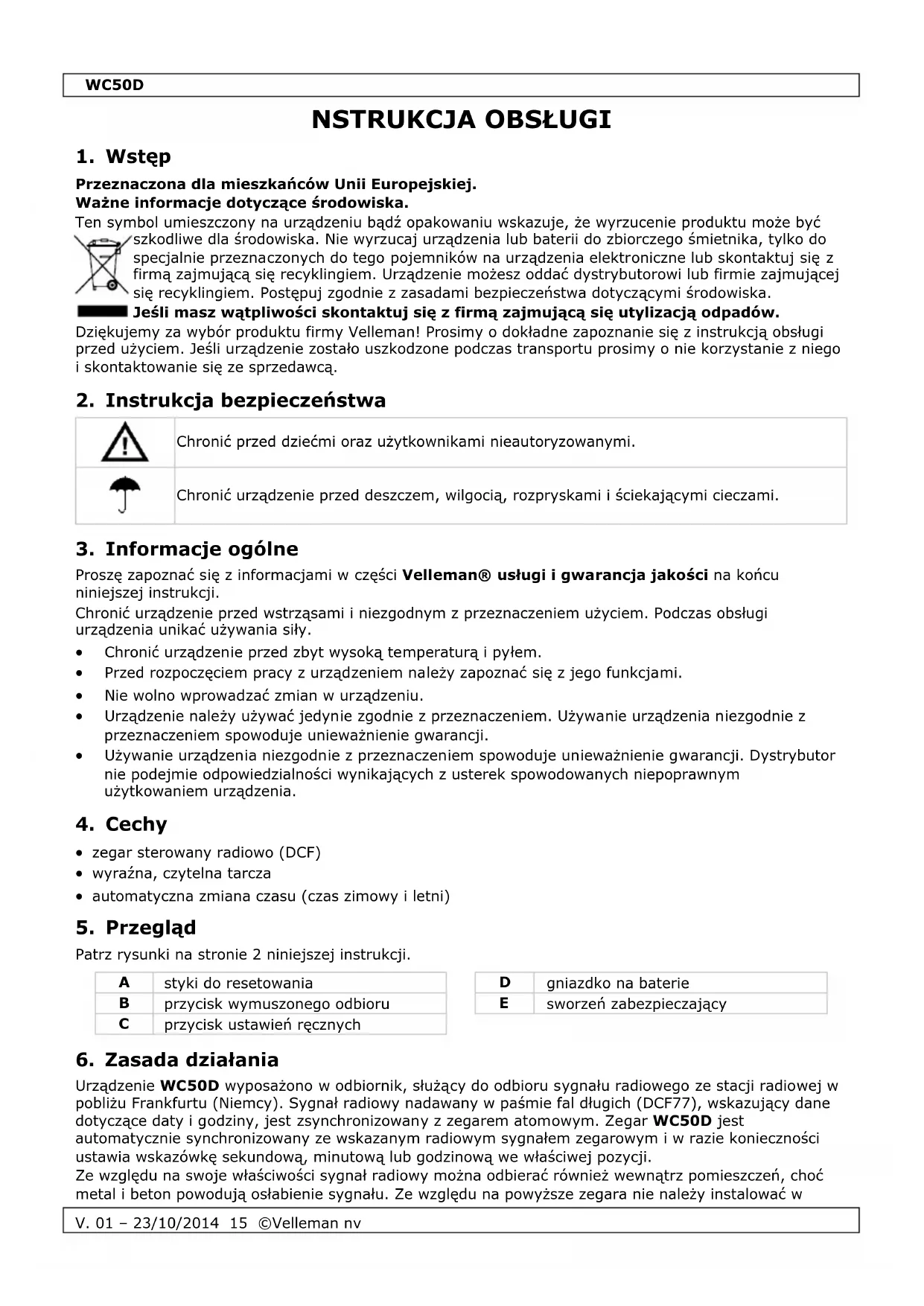 INSTRUKCJA OBSŁUGI WC50D VELLEMAN