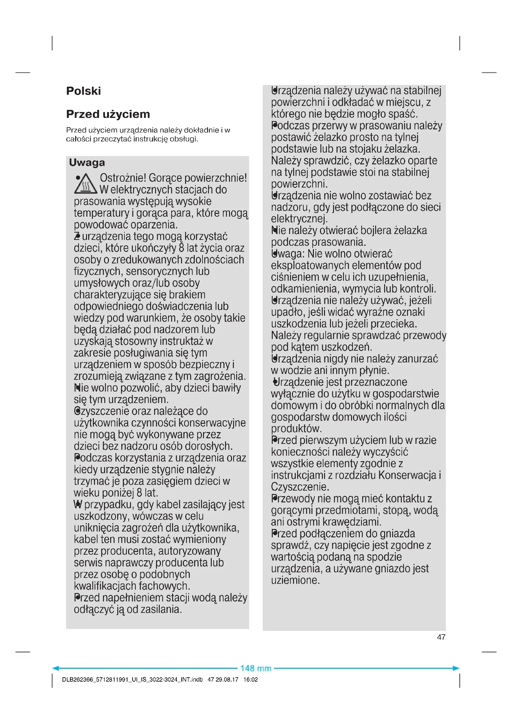 DLB262366_5712811991_UI_IS_3022-3024_INT.indb 46 29.08.17 16:02Polski Przed użyciem Przed użyciem urządzenia należy dokładnie i w całości przeczytać instrukcję obsługi. Uwaga