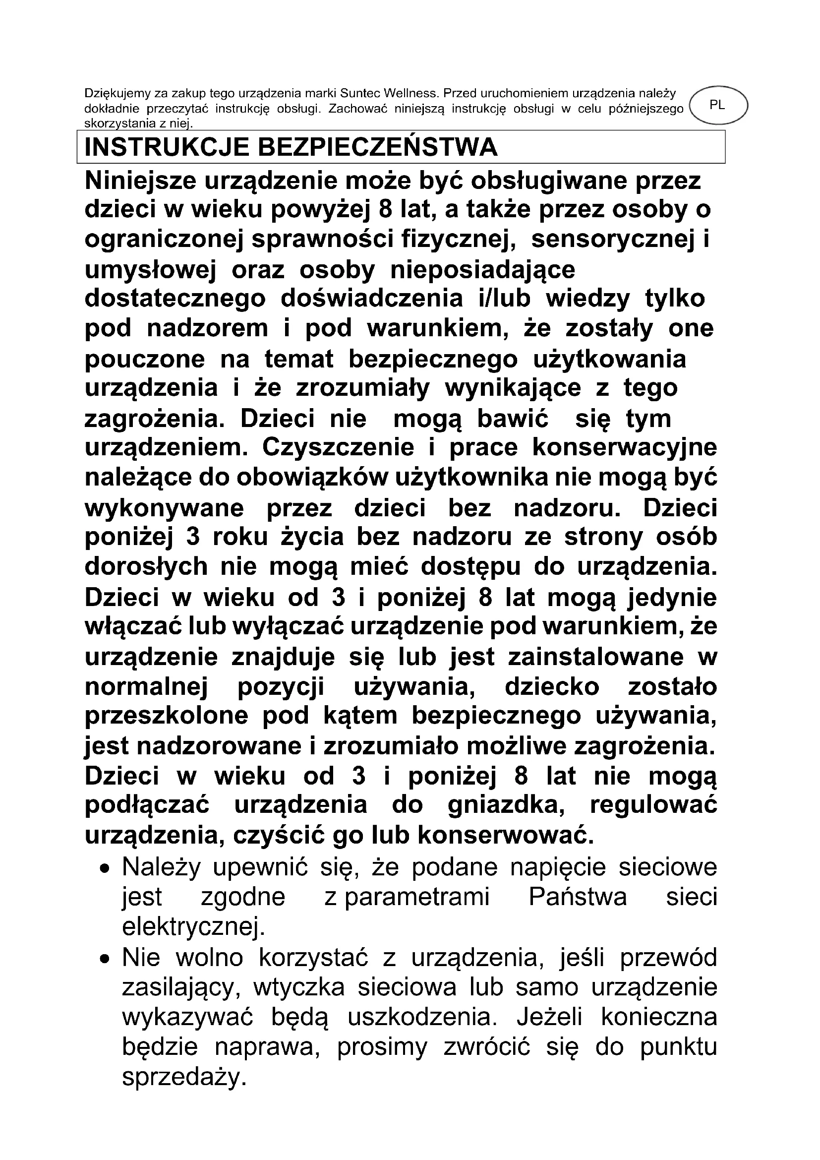 - W razie reklamowania urządzenia należy przynieść urządzenie w oryginalnym opakowaniu wraz z paragonem do sprzedawcy. Na stronie internetowej www.suntec-wellness.de można dokonać szybkiego i wygodnego zgłoszenia serwisowego oraz zasięgnąć dodatkowych informacji.